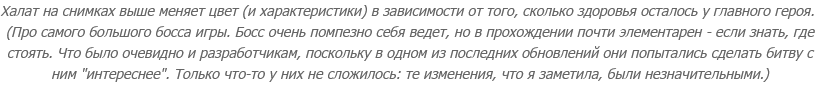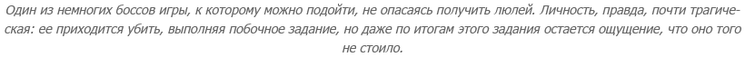 С боссами же как: даже в самой суровой ситуации где-то на задворках маячит мысль, что достаточно продолжать проигрывать пытаться - и рано или поздно преуспеешь. Найдешь "ключик", поймешь, как действовать - и вражина ляжет, пусть и с десятой попытки. Тем более, что игра весьма либеральна в плане смертей. К примеру, первого своего босса (Блуждающее Умертвие) я одолела, тупо бегая к нему, умирая и попутно прокачиваясь на мелочи, которая попадалась по дороге. Как итог - когда я пошла к другим боссам главы, уровень персонажа был "хорошо так за 20", что не могло не сказаться на сложности боя.