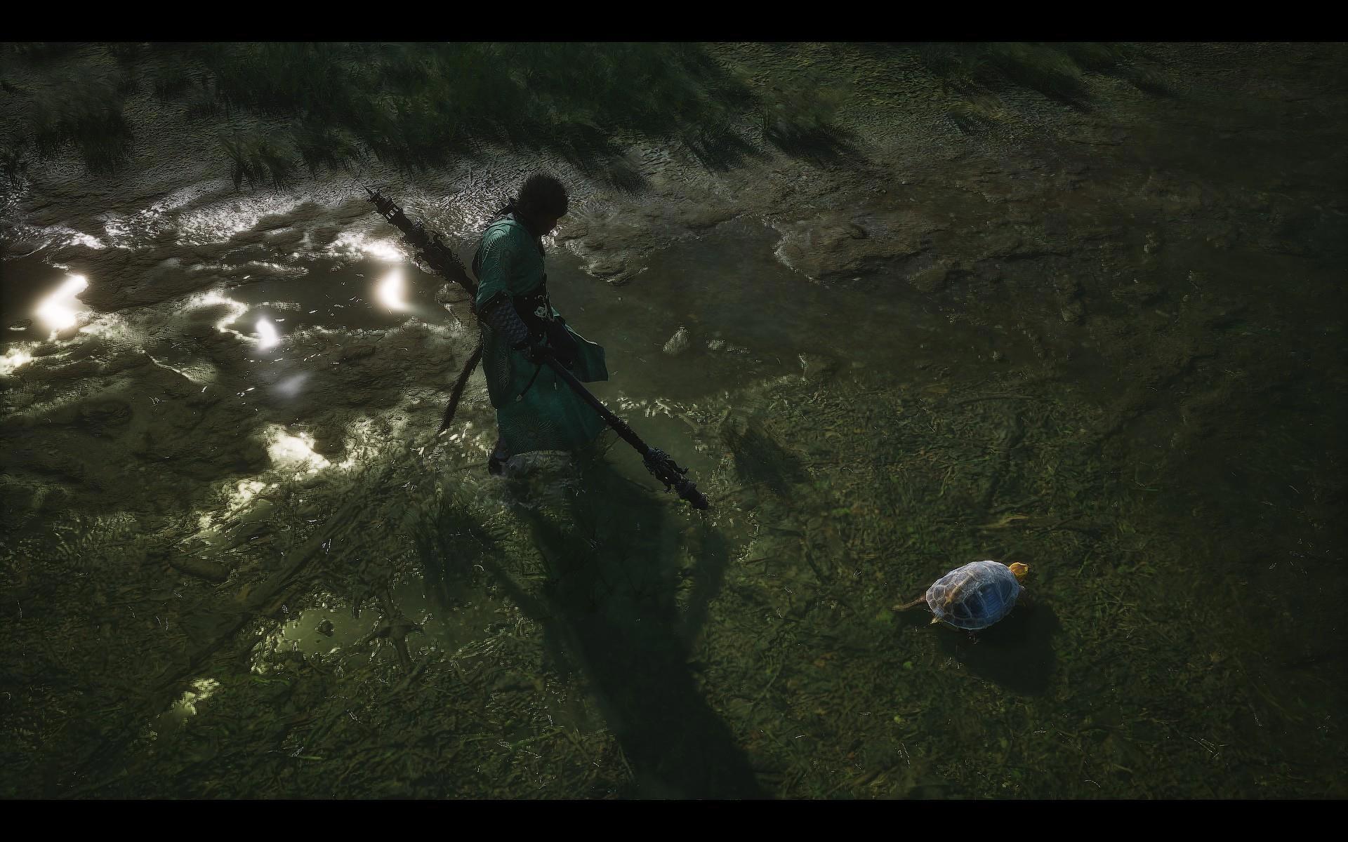Рост персонажей вызывает много вопросов. В "соулсах" как бы принято делать противников существенно больше игрока - предполагаю, потому что игровой процесс требует точности действий и маленькие враги еще больше затрудняли бы и без того непростые бои. Но в BMW в этом плане все весьма хаотично. Скажем, в прологе можно заметить, что оппоненты примерно одного роста, однако, когда в шестой главе Эрлан выходит драться с Избранным, он очевидно превосходит его в размерах; когда же бой заканчивается, они опять оказываются одинаковыми. Или взять другое действующее лицо - Юань Шоученя (старый провидец, который обучает нас некоторым вещам - тоже персонаж "Путешествия на Запад"): когда мы встречаем его в первой главе, он просто огромен, но к пятой главе становится ростом с Избранного.