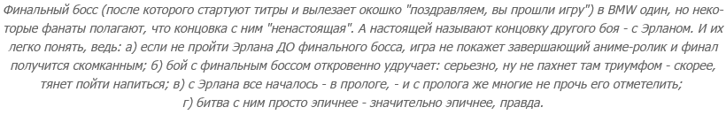 Думаю, теперь не надо пояснять, почему мое сердце в трех прохождениях было разбито три раза (в четвертый его разбили визуальные баги). Я оказалась в числе тех, кто бил финального босса и рыдал - и я тут не про Эрлана, а про того, кого назначили "финальным" авторы (ниже мы на него посмотрим). Потому что я понимала, что в принципе не хочу (да и не должна, если уж по справедливости) с ним воевать - и что в глобальном, сюжетном, плане это ни к чему не приведет.