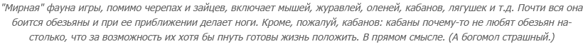 Не назовешь "равномерной" и работу ИИ. К примеру, если персонаж бежит по мосту, а под мостом случается монстр, монстр вполне может его заметить и предпринять весь некороткий путь наверх (с обходом всех препятствий и всеми подъемами), чтобы его достать. Но одновременно какой-нибудь безобидный заяц, чья единственная задача - убегать в кусты при приближении игрока, может упорно "штурмовать" камень или дерево, в которые уперся, пока Избранный не подойдет и не сработает скрипт на его исчезновение.То же касается и дизайна уровней. Про участки, которые по логике проходимы, но непроходимы по меркам BMW, я уже говорила, но помимо них попадаются, например, места, где обезьяна может помереть от падения с большой высоты, хотя никакой высоты нет и в помине. При этом во второй главе есть босс, бой с которым осложняется риском падения в пропасть, но... он такой один и сорваться, в сущности, можно только там, где проходит баталия с ним - вся остальная местность заботливо огорожена "невидимыми стенами".