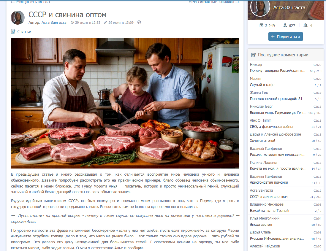 Нарезанное промышленными фрезами для магазинной продажи мясо - это все на что хватило его воображения (и не надо про глупую нейросеть - вставлял-то сию абсолютно дурацкую картинку в свой пост именно Зангаста).