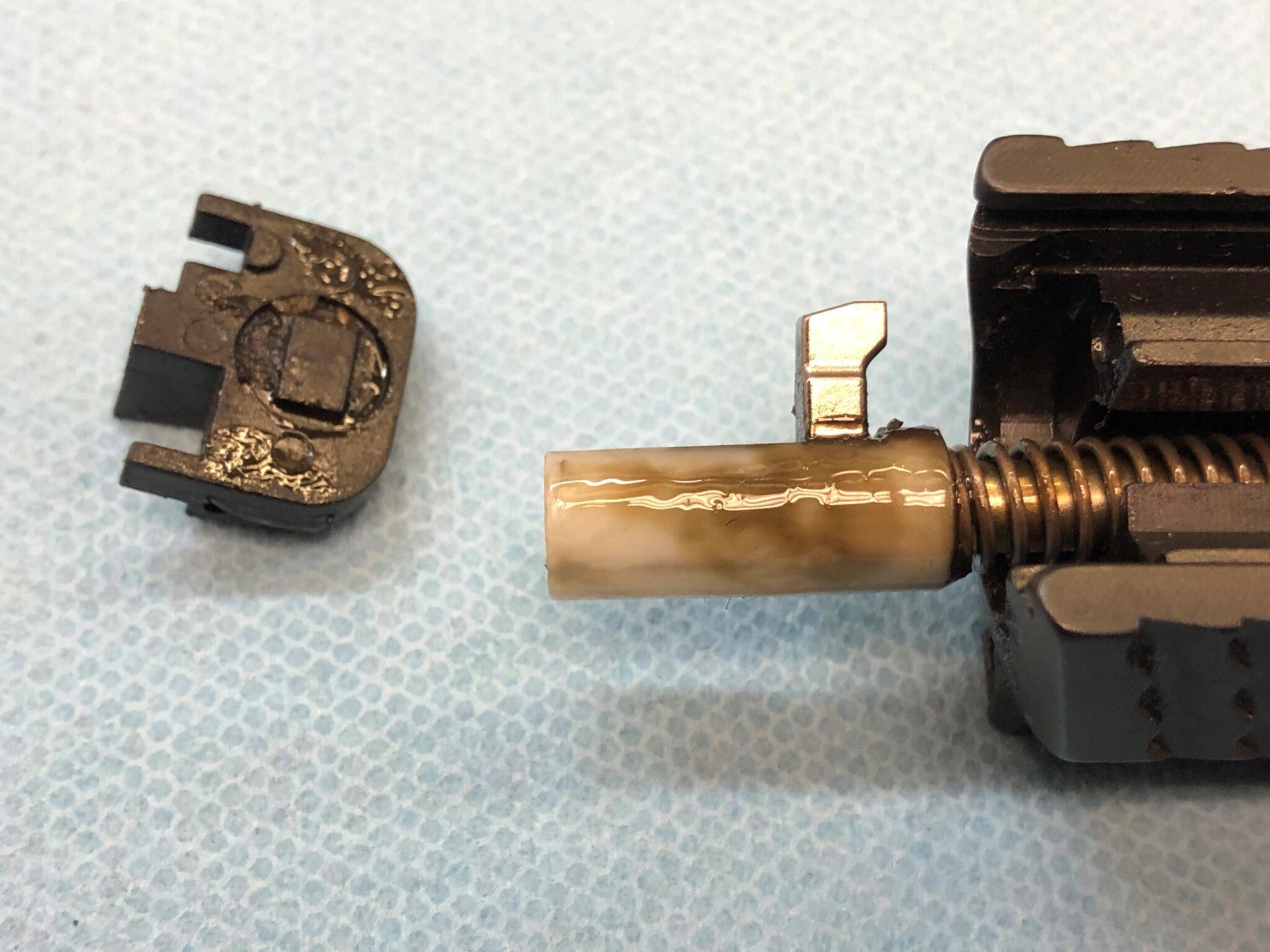 Мой потрясённый друг подсчитал, что почти у 9 из 10 (нет, это не опечатка — почти у 90%!) пистолетов с ударниковым механизмом в ходе пятизарядного испытания наблюдался как минимум один отказ выстрела или выброса гильз, в основном из-за избытка застывшего масла и растворителя в каналах ударника и/или карманах экстрактора. У одного офицера (который, по иронии судьбы, был сертифицированным оружейником Glock) три из пяти пистолетов Glock вышли из строя. Один пистолет M&P, испытанный после пятизарядного испытания, дал сбой в общей сложности 5 раз за 15 выстрелов".