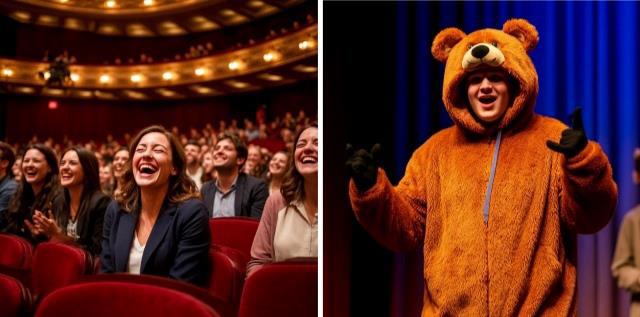Зал же рыдал о смеха и сбивал руки в аплодисментах.