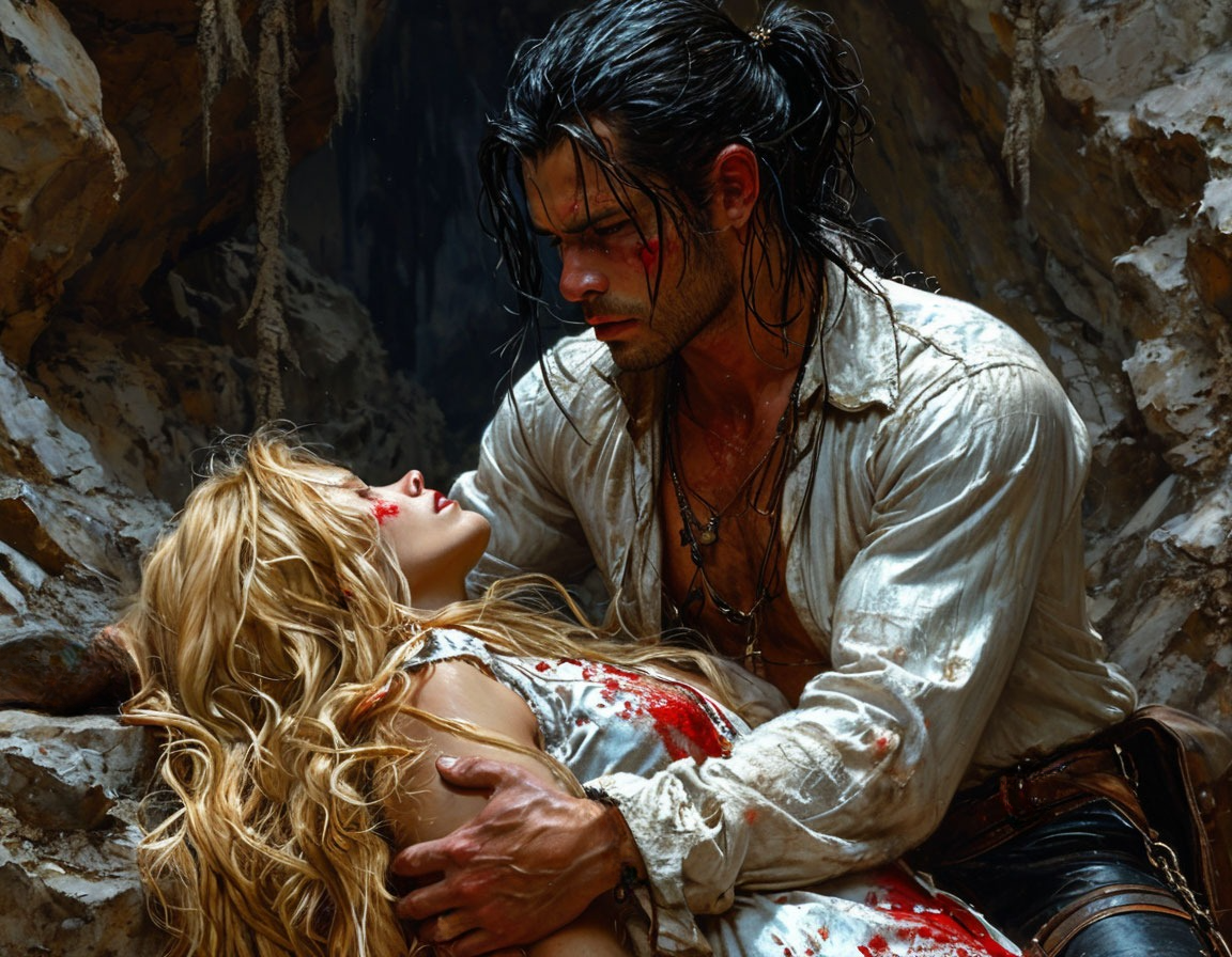 В таком неудобном положении охотник провел около часа, прислушиваясь к ее тихому дыханию, пока спина и ноги не затекли так, что он перестал их чувствовать. Только тогда, опираясь на руки, мужчина сменил позу, сев к стене и откинувшись на нее, ощущая, как кровь снова прилила к занемевшим конечностям. Охотник не спускал взгляда с лежащей, ловя каждый легкий вдох. Но через несколько минут он не выдержал, и снова подсел к ней.
