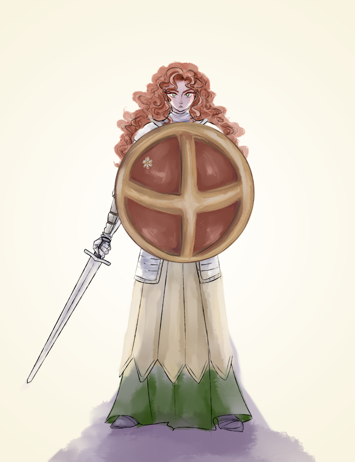 А вот вам еще набросок Роны, у которой на щите дружелюбный цветочек.