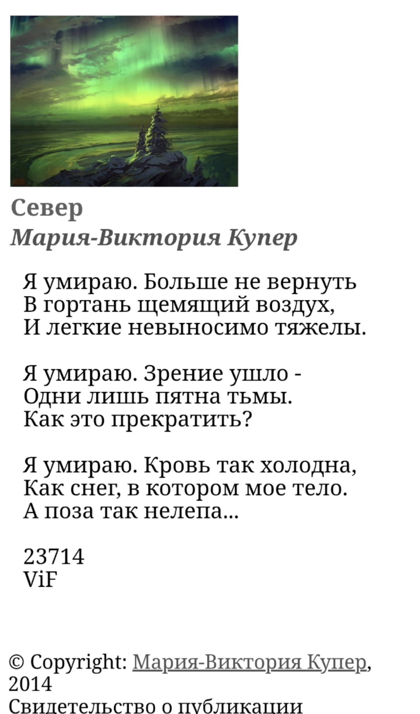 Стихотворение «Север» я написала 11 лет назад, когда только закончила первый курс. Достаточно интересная работа в эмоциональном и техническом плане. Тогда я только-только нащупала свой стиль и средства выражения, но все равно долго блуждала и металась...