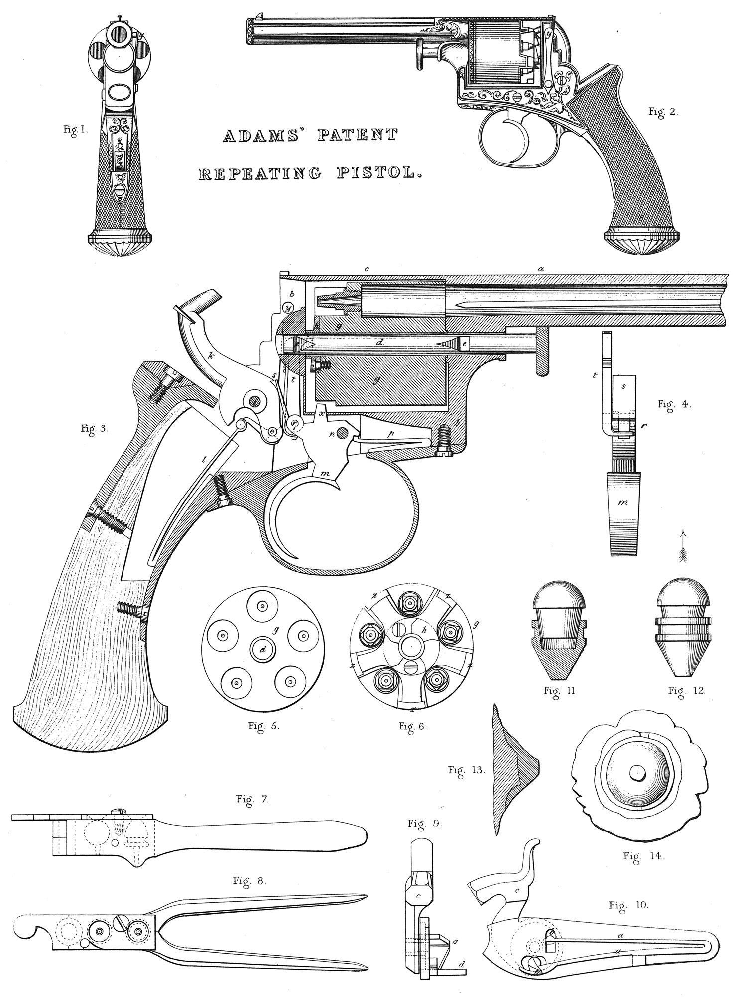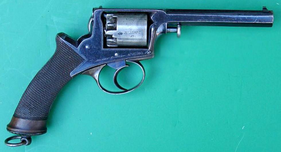 Ещё один оружейник, добравшийся до нашей страны со своим капсюльным револьвером – это англичанин Роберт Адамс (Robert Adams). Он получил патент на револьвер собственной конструкции в 1851 году – как раз перед Крымской войной. Он, как и Ремингтон, смикитил, что раздельная рамка Кольта, отдельный ствол и трудности с извлечением барабана – не есть хорошо. В своей конструкции он всё это учёл. В результате получился вот такой револьвер (карманная модель):