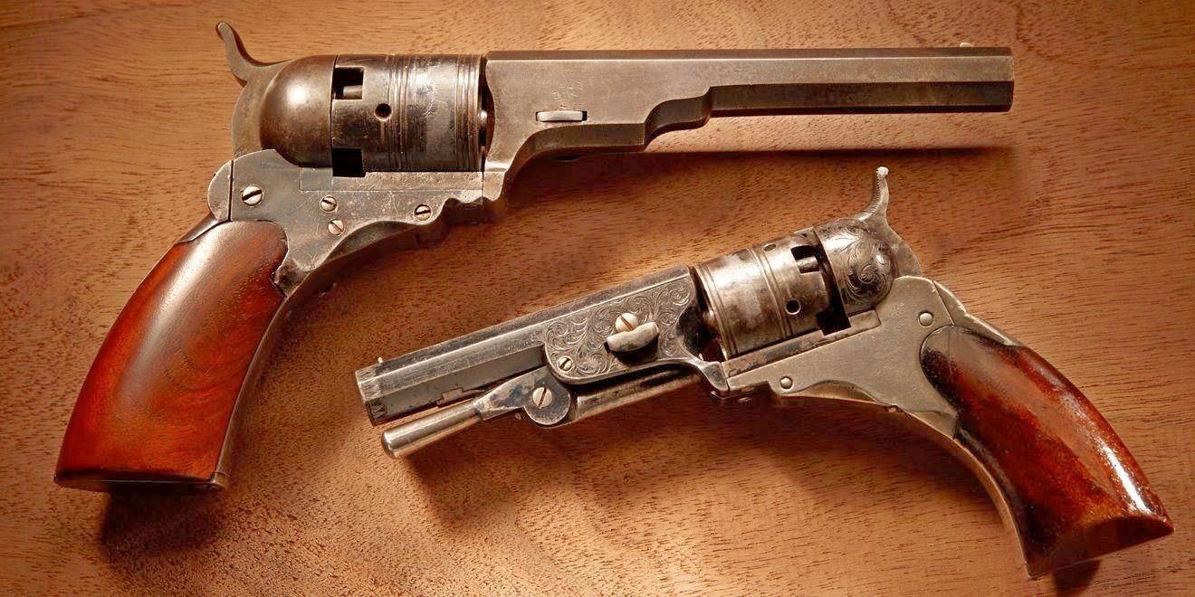 Конструкция оружия начинается с боеприпаса. Когда появились первые револьверы вроде того же Кольта Патерсона (Colt Paterson 1836 г.), то заряжать эти образцы было сущим мучением. Вот эти пистолеты образца 1840 года: