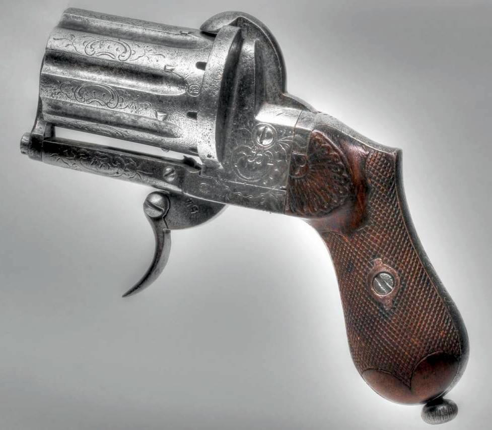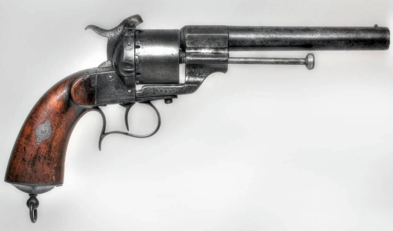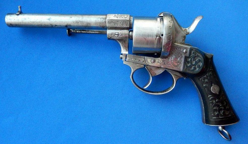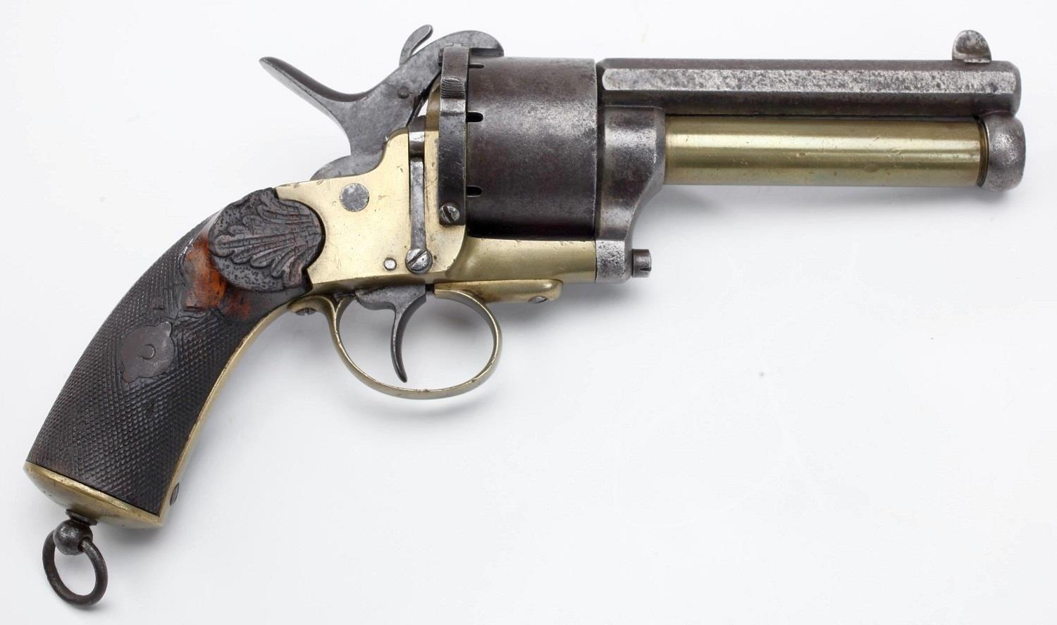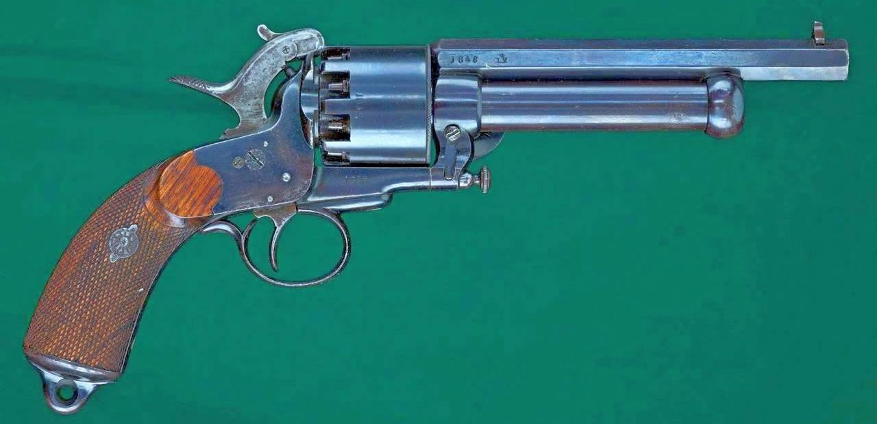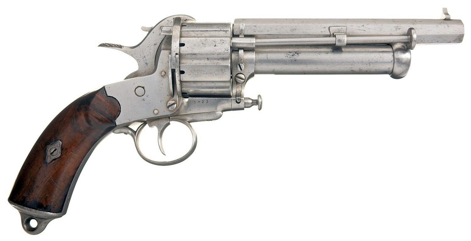 Крупнокалиберные револьверы Лефош могли выглядеть несколько иначе, но всё равно оставались на редкость элегантными. Вот, например револьвер Лефош калибра 12 мм образца 1854 года: