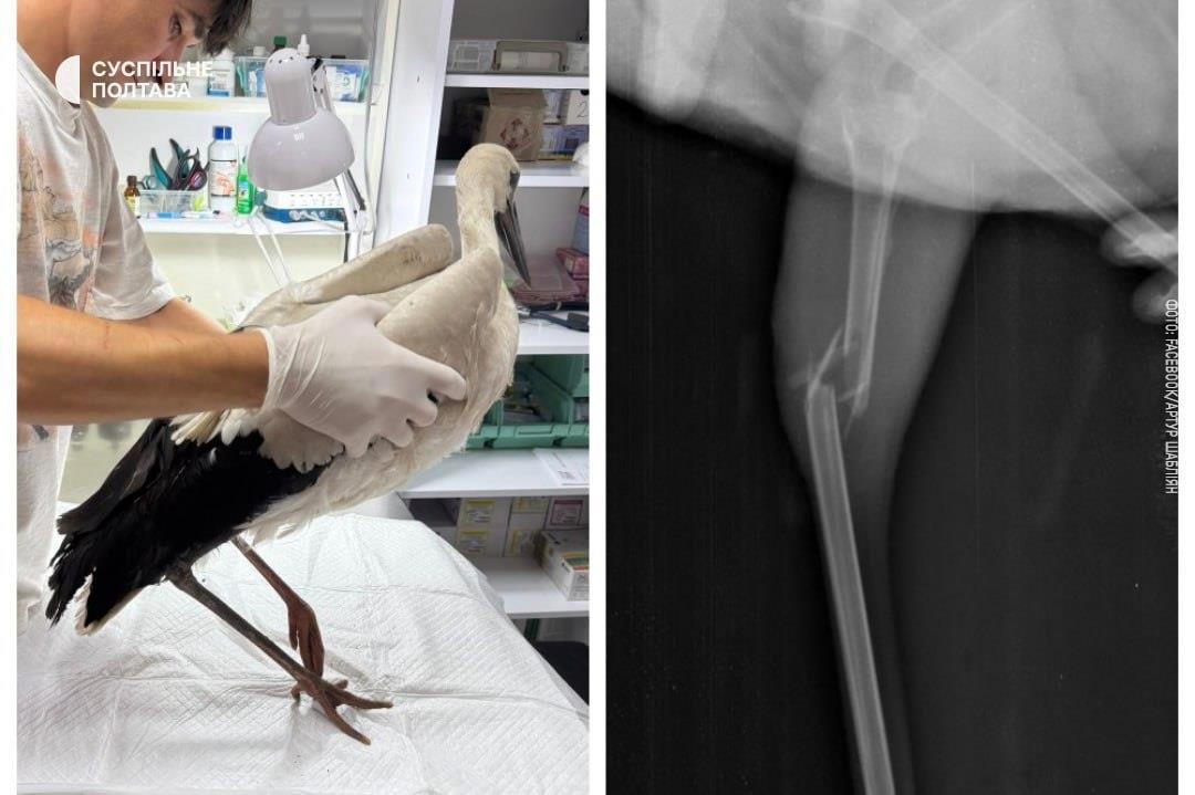 Сделана операция. Ветеринары пока не источают оптимизм, так как при таких травмах может быть всякое.Но пока аисту чуть легче.