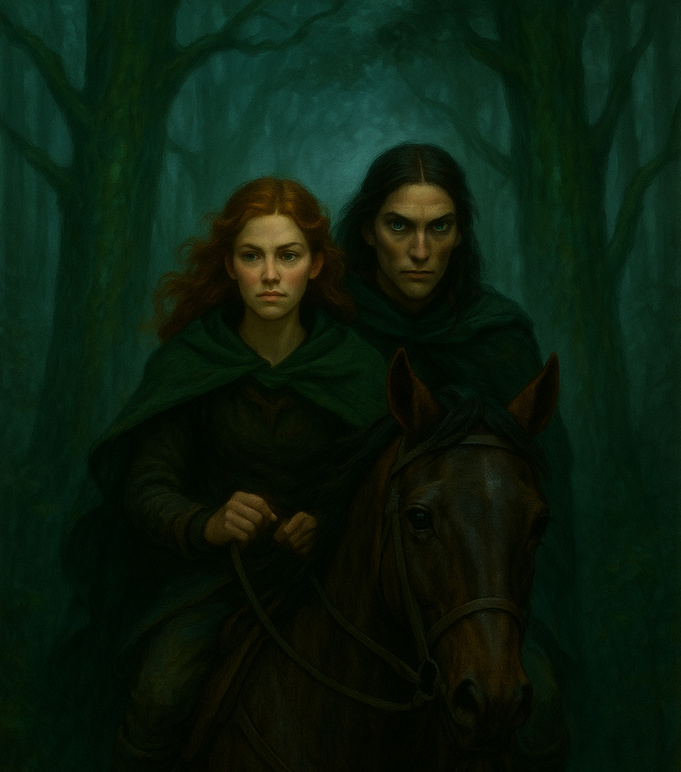 Девушка взмахнула поводьями, и кобыла рванула вперёд, преодолевая пространство, словно тень, скользящая по земле. Вдали виднелись мрачные силуэты деревьев, стоявших как стражи на границе неизвестного. Лес был их единственным шансом на спасение, таких, как этот дикарь со звериными глазами, в королевстве убивали не раздумывая.