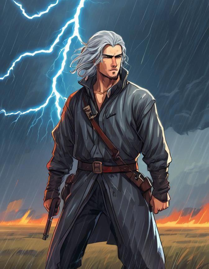 (А вот к оружию лучше не присматриваться, чёртова машина так и не научилась рисовать его нормально... были версии и получше, но сюда засунута мною та, где больше сходства у физиономии самого Рэйнира.)