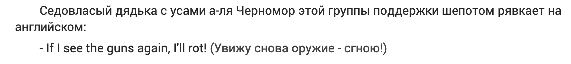 Автор: pascendiНекоторые авторы хочут образованность показать и все время говорят о непонятном (с), то есть, я хотел сказать, норовят вставить в текст кусочки на иностранных языках. Само по себе это ни хорошо, ни плохо: если работает на сюжет или на образ персонажа, то почему бы и нет?
