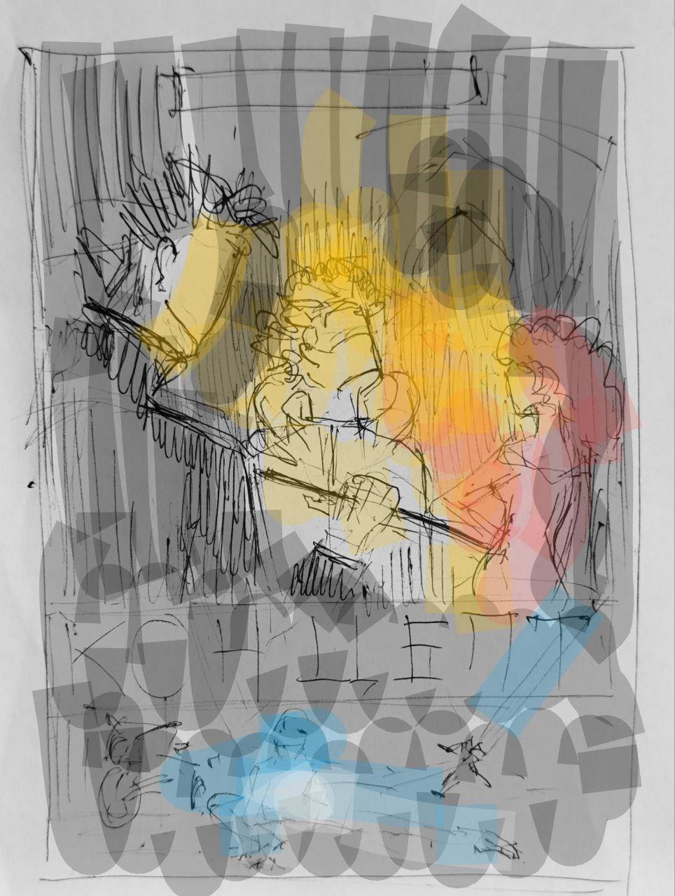 А вот такой был мой первоначальный эскиз, выполненный в чудесной технике "накалякай ручкой на оборотке и раскрась с телефона":