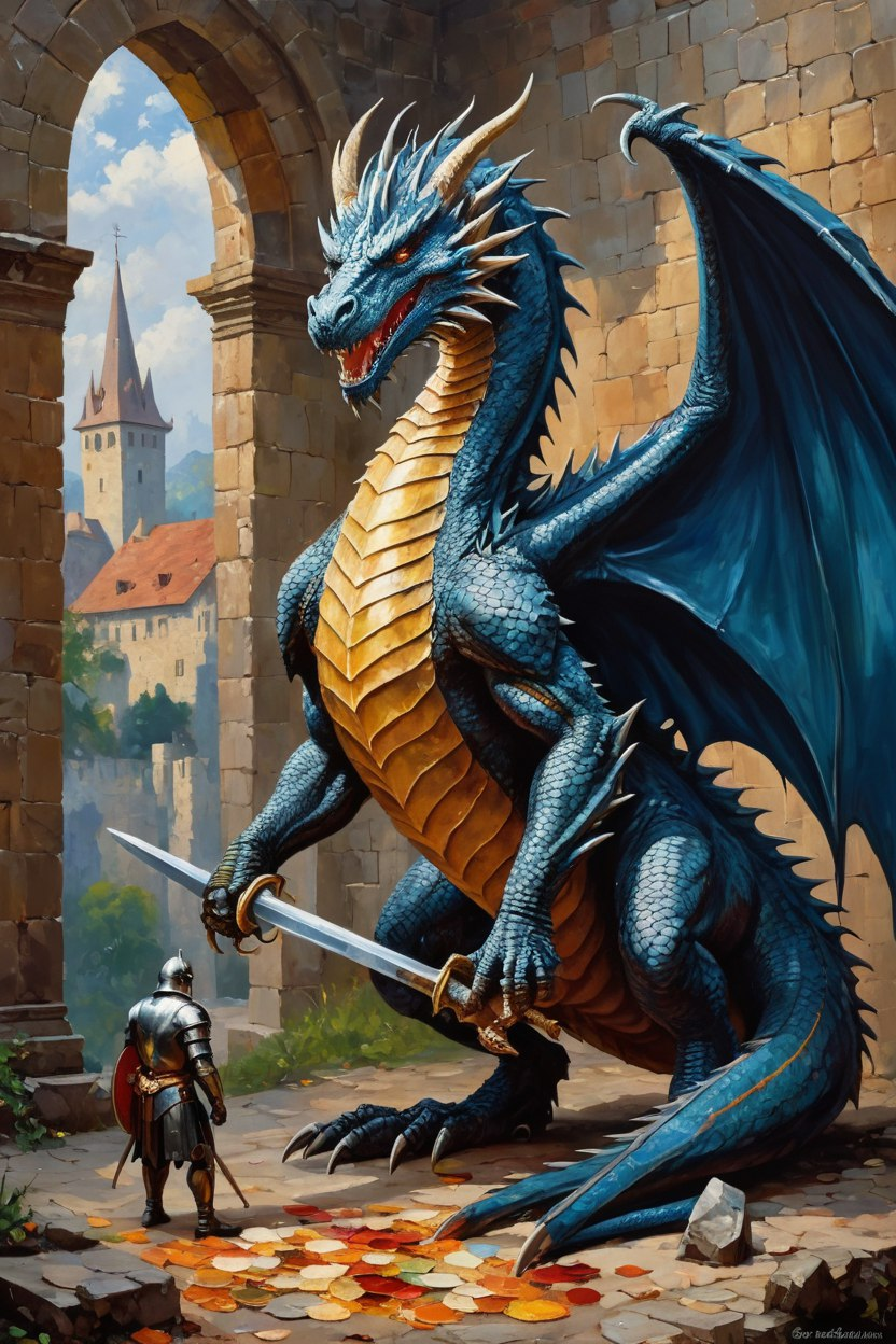 "Герои меча и дракон" - это эпическое фэнтези, но с изрядной долей юмора и сарказма. После напишу про эту книгу подробнее с тегом "самопиар". А пока - предлагаю полюбоваться вместе со мной всратыми драконами и рыцарями. Первая подборка генераций ИИ всем понравилась.