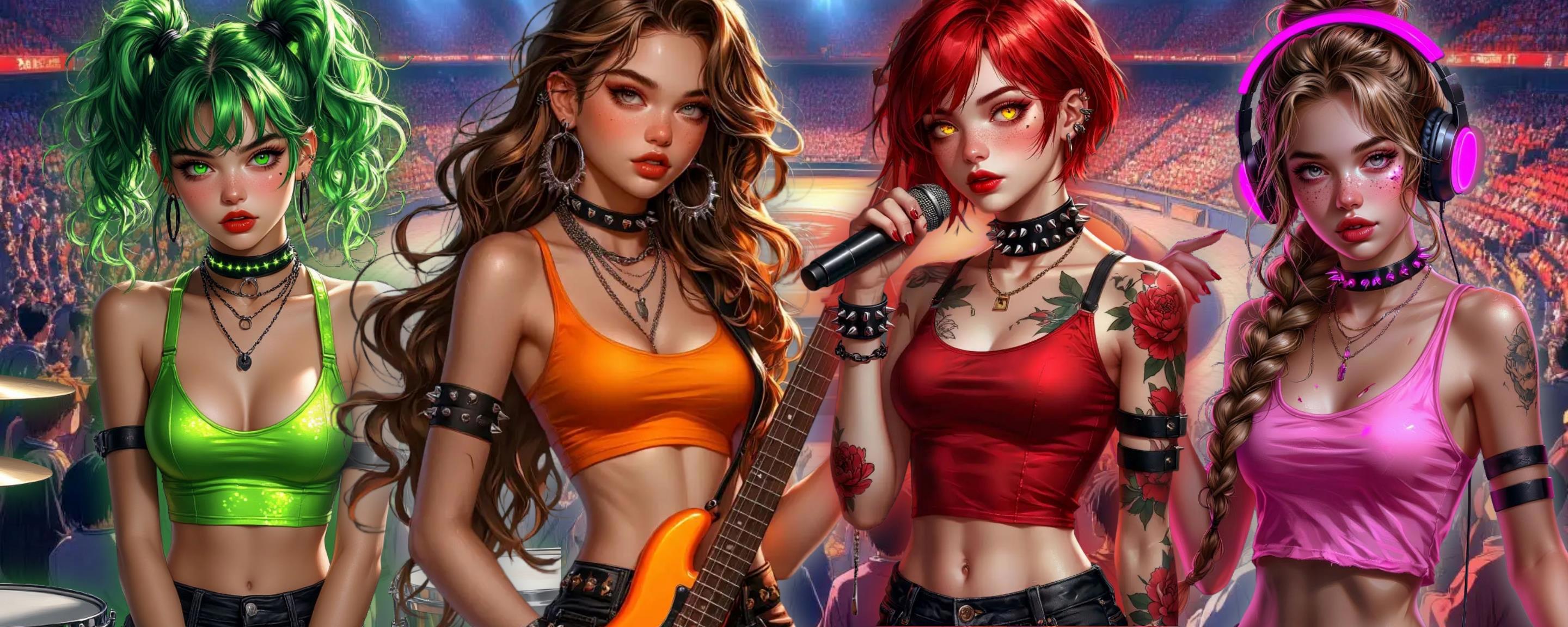 Автор: Луна ЧародееваПривет, друзья! У меня тут такая идея появилась — просто бомба! Придумала классную сцену с выступлением персонажек в рокерском стиле.