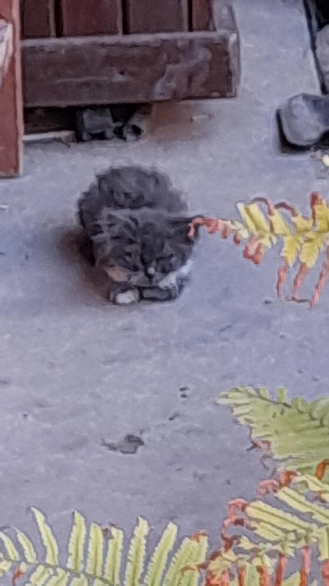 Можно было бы привести подкидыша в товарный вид и выставить в телеграм сообщение, что отдам безвозмездно и даже шоколадку подарю тому, кто заберёт. Но он в руки не даётся, шипит и убегает. А у него блохи и глаз закисший, вот кому он такой нужен? Это на зуме сфотографировала, иначе никак. И со двора он не уйдёт . Кошь мамкой пахнет и еда у неё всегда в мисочке есть. И как тут быть още не знаю.