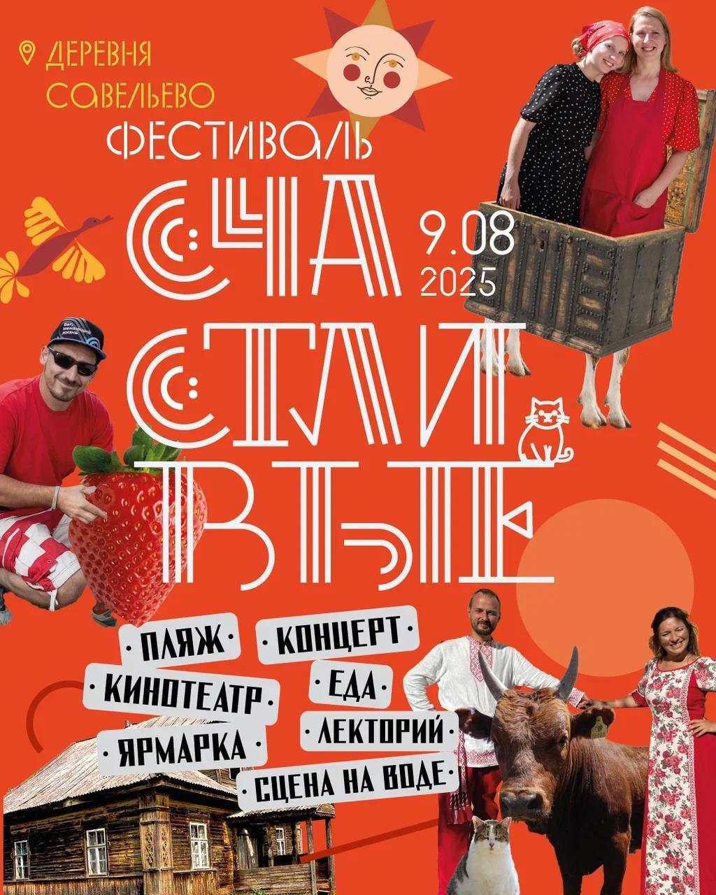 Ежегодный праздник сообщества Счастливых случится 9 августа 2025 в деревне Савельево Переславского района. Прямо на берегу озера и, мало того, даже НА и В озере. Сцена на воде. Ярмарка, концерты, выставки, лекции, детские мастер-классы, водные процедуры и современное искусство.