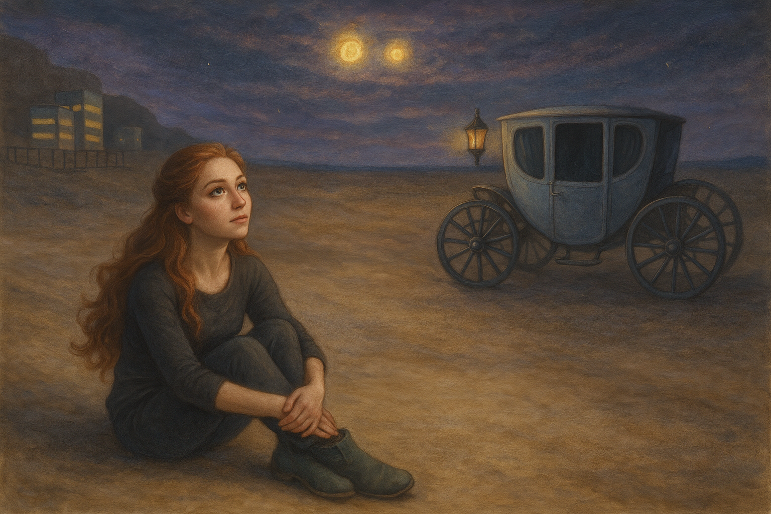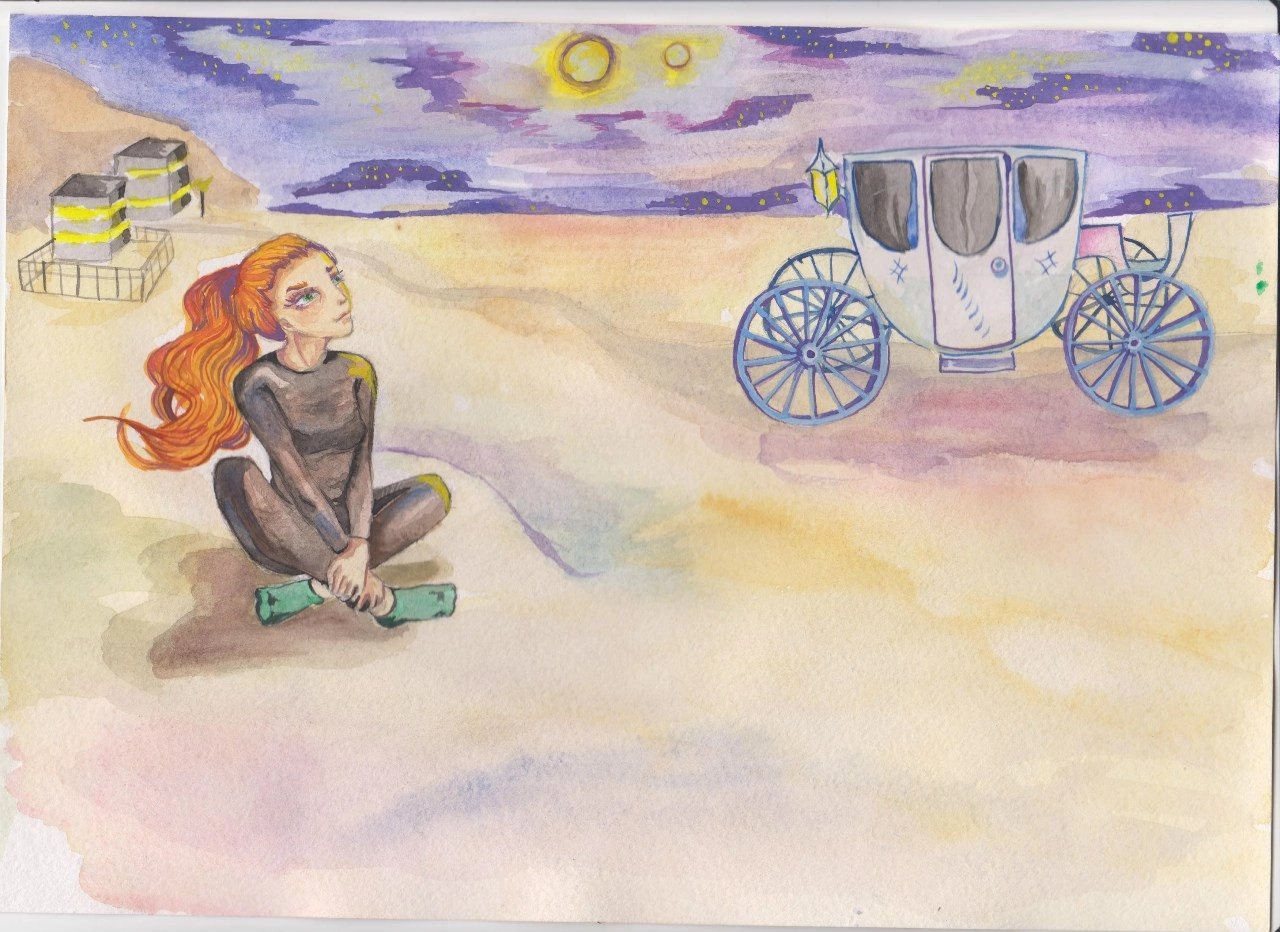 Сначала я просто попросила нарисовать на основе концепта иллюстрацию, вышло так: