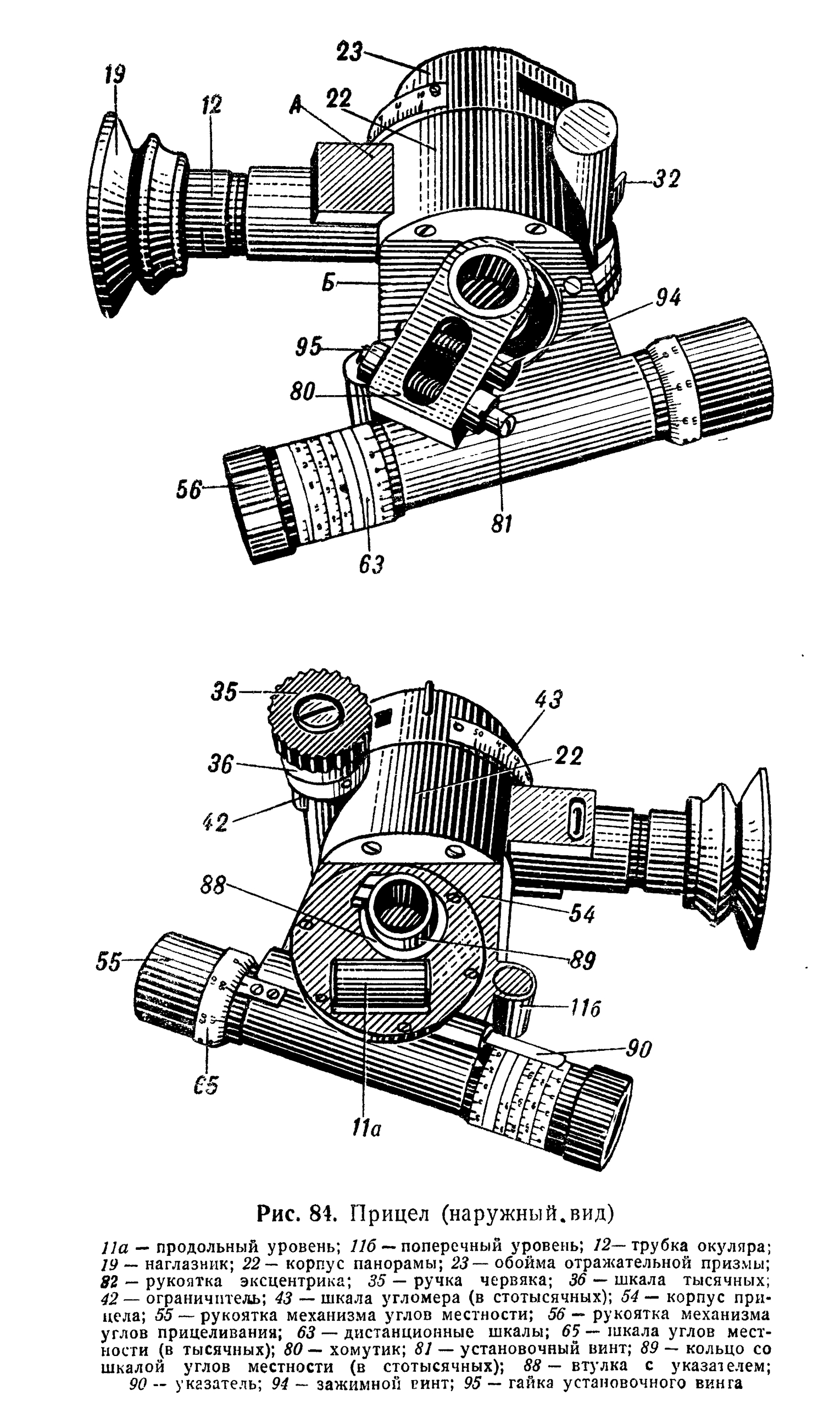 Как и нормализованный прицел обр. 1930, имеет внешние баллистические шкалы, но расположены они не так удобно - нужно не просто отклонить голову назад от окуляра, а заглянуть за него сбоку-сверху.
