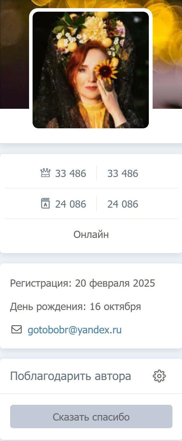 Автор: Irina UrbinaШтош... Вот я и прикрутила волшебную кнопочку "Сказать спасибо". Она есть. Она не может не есть. Так что если хочется меня как-то отблагодарить, то лучше в денежном варианте, ибо на данный момент я пока что (пока что!) безработная.