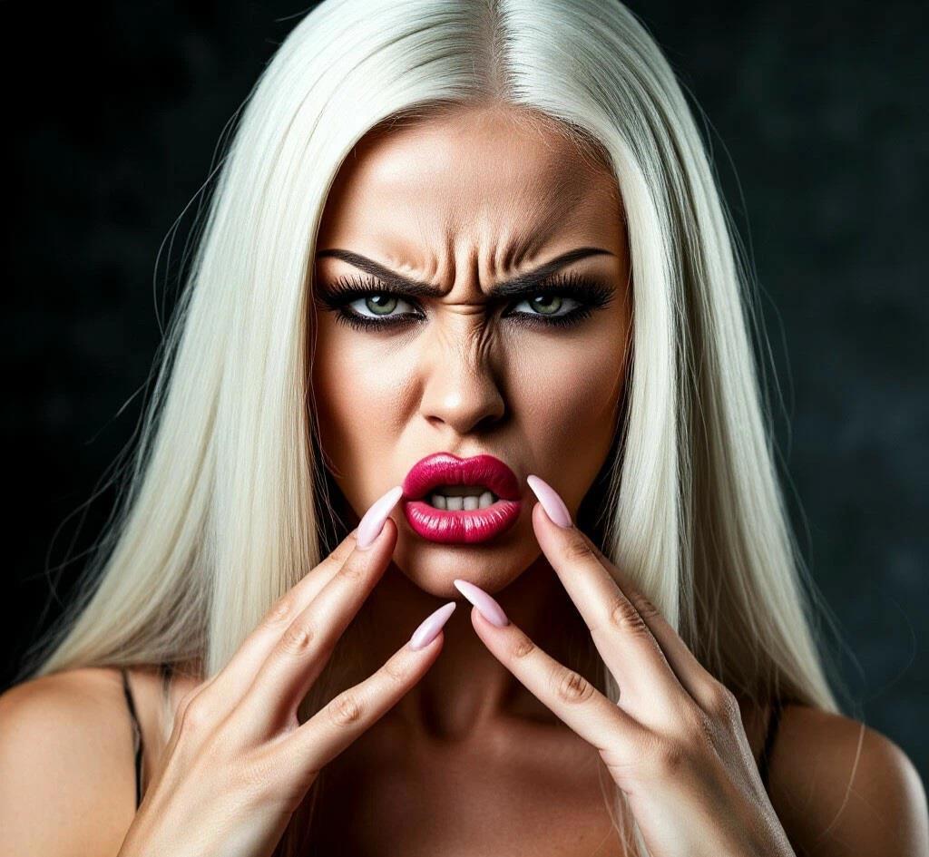 Блондинка бросила дерзкий взгляд на Ангелину и, приподняв верхнюю губу в злой ухмылке, рявкнула противным скрипучим голосом: