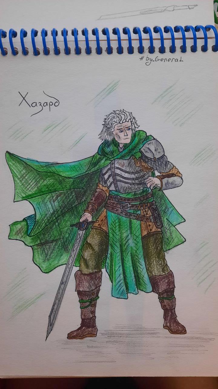 Один из них, также решил создать пару зарисовок по моим персонажам, а в последствии, ещё и обработать нейросетью. И сегодня я делюсь рисунком главного героя романа "Судьба наёмника" Хазарда.