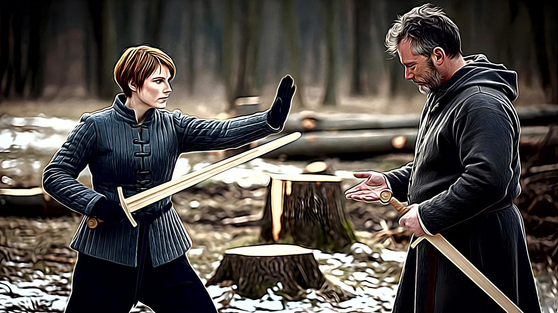Тем временем Насильник, которому, как и Елене очень не понравилось, как барон обошёлся с девушкой, куртуазно вызывает его на дуэль. Елене приходится в этом участвовать, дабы дуэль состоялась, ибо Искупителя дворяне ровней себе не признают, хотя он и дворянин.