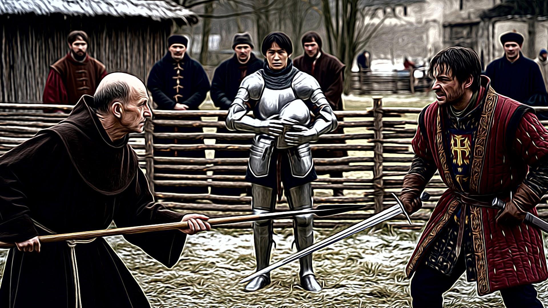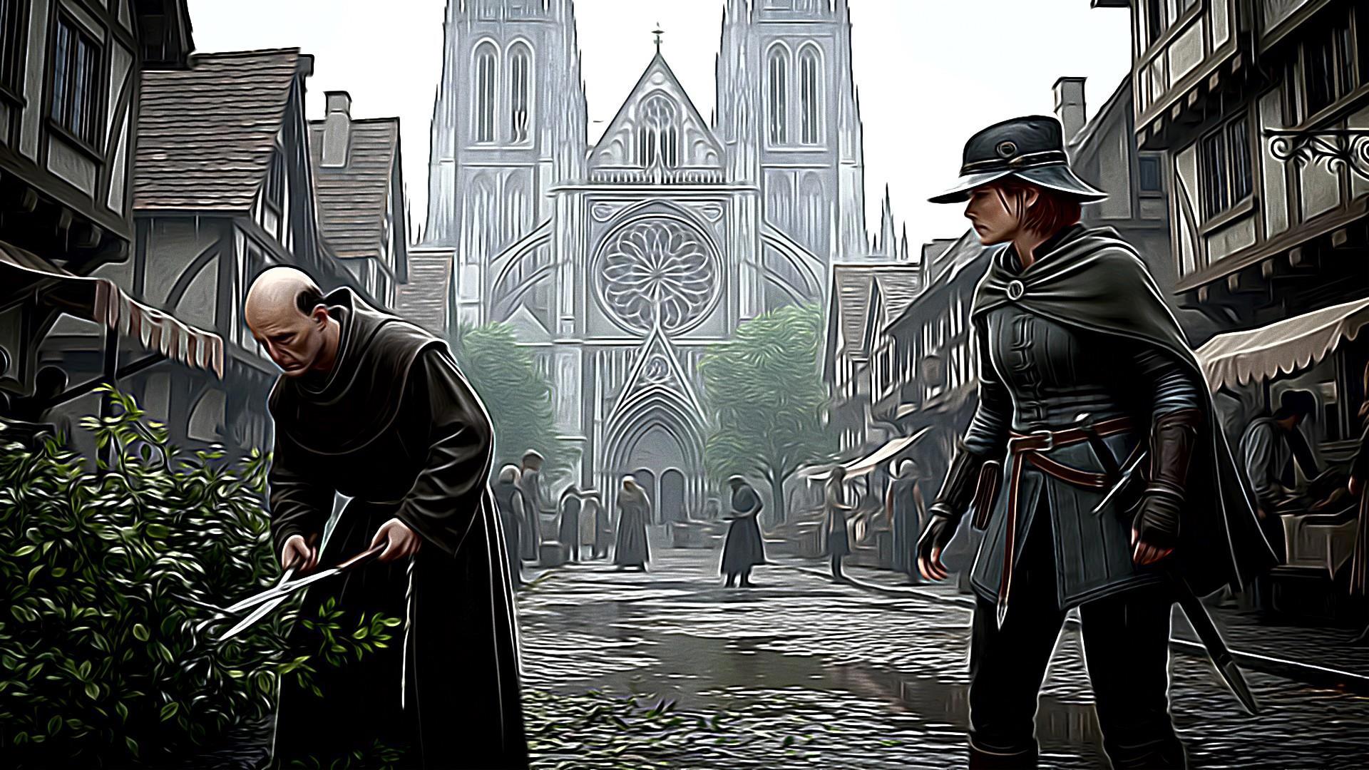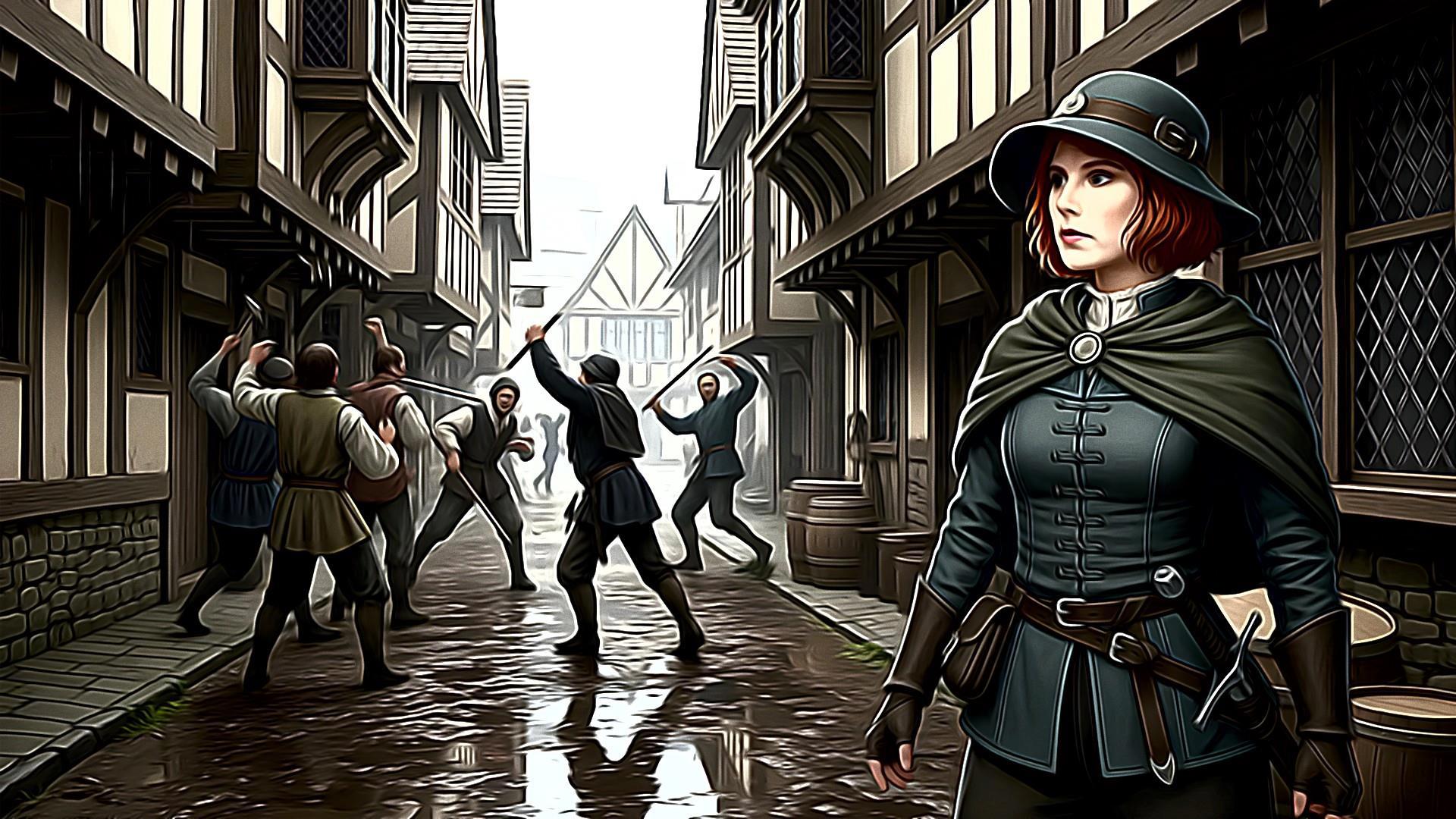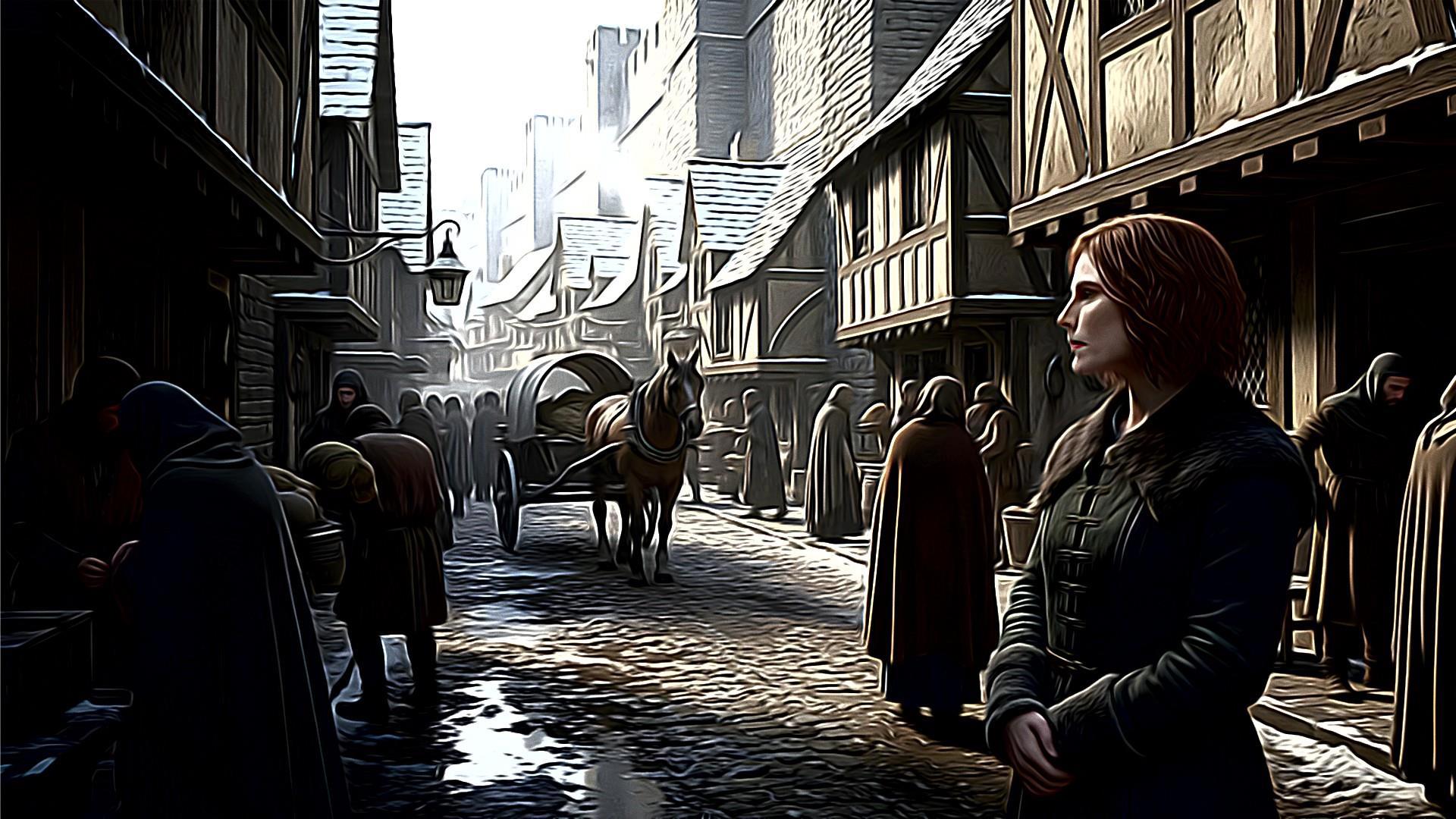 Елена на прогулке. Кому-то бьют морды. Обычный пейзаж позднесредневекового города.