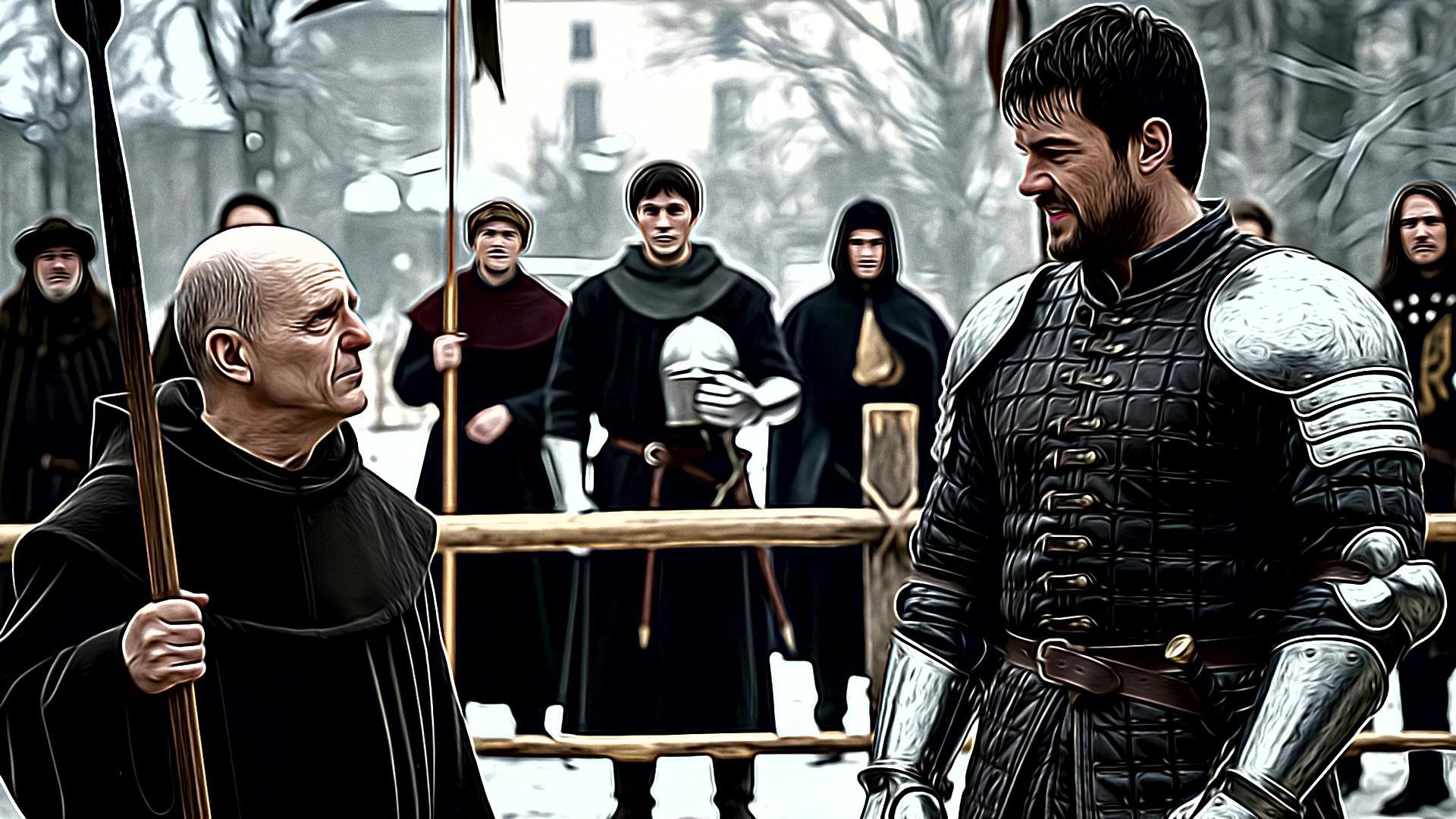 За действом наблюдал и весьма проникся Алонсо Кехана, дон-киходистого облика и поведения господин. Предлагает Насильнику преподать несколько уроков воспитаннику Кеханы, молодому Барнаку Гигенхайму.