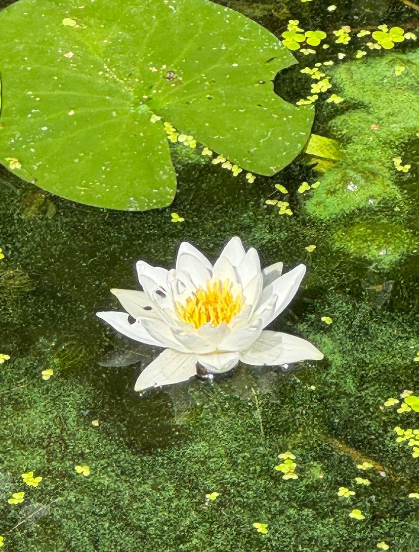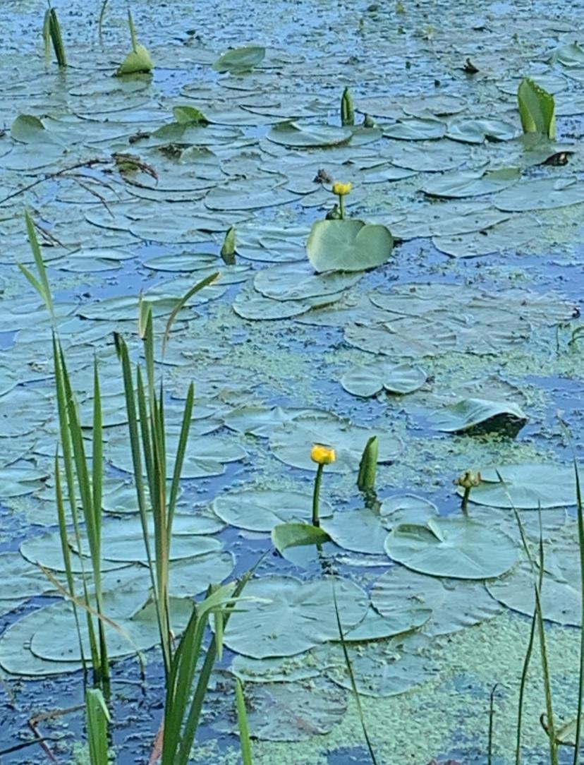 Да, мы живем на протоке, а основной фарватер закрыт островами. Поэтому создается полное впечатление, будто это -небольшая речка. Не стоит обольщаться, в середине протоки течение вполне себе волжское и сильное. Но у берега- все как на каком-нибудь лесном озере - стрекозы, лягушки, плещуться рыбки, цветут кубышки, нимфеи... и...
