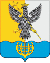 «В рассечённом золотом и серебряном поле над волнистой лазоревой оконечностью, обременённой золотым основанием корабельной кормы - чёрный, увенчанный золотой короной, орёл с глазами, клювом и лапами того же металла, держащий в левой лапе удлиненный золотой, с трилистными верхними концами, крест в перевязь».