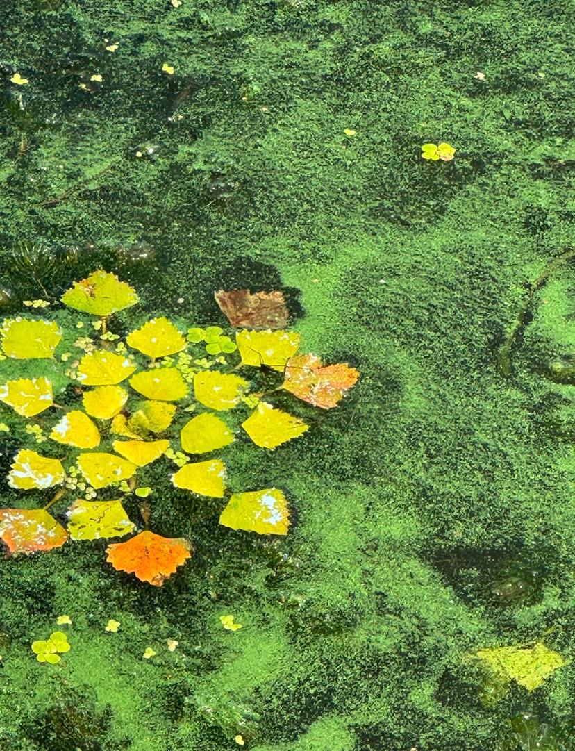 Та-дам! Я впервые его вижу за последние сорок лет, народ! "Последний раз" был на Пустынских озерах. Это растение из "Красной книги" - чилим или водянойй орех. Цветов и плодов нет, но, возможно, если отплыть подальше, там будут полноценные заросли.