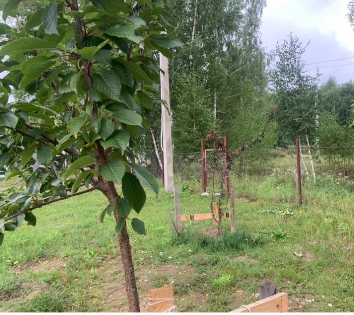 Да,полноценного сада тут у на пока нет, потому что здесь была стройка. Растут несколько яблонь, пара кустов смородины, три малины и две черешни. У нас ещё и супесь здесь, так что удобрения нам сыпать и сыпать...