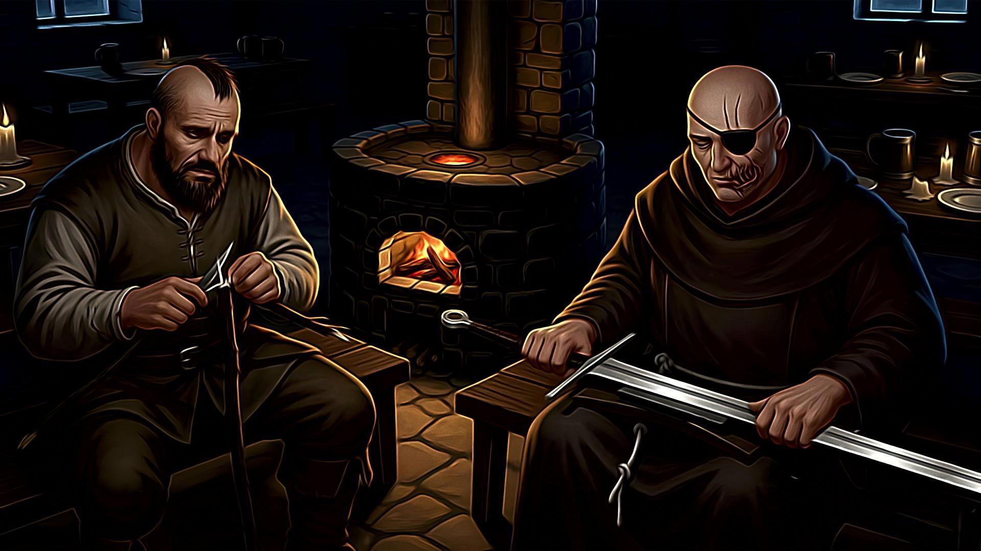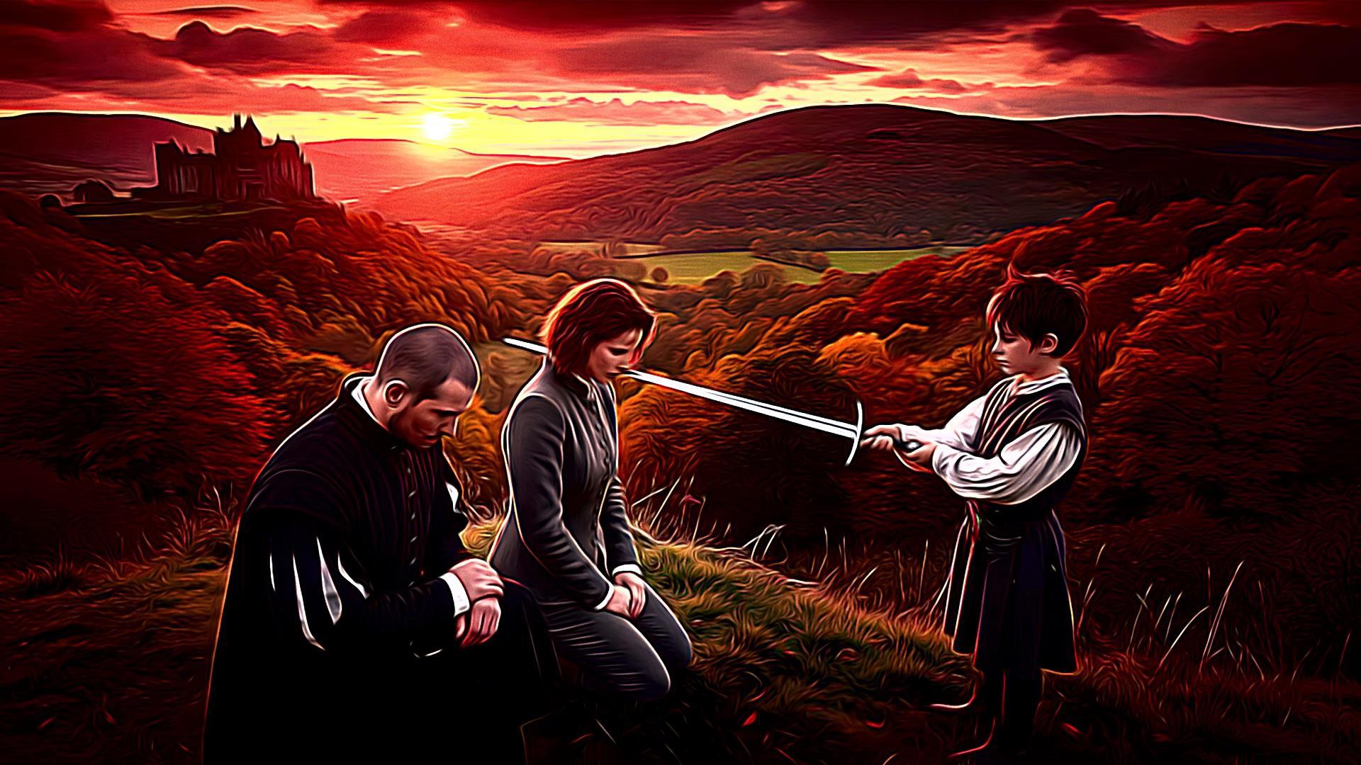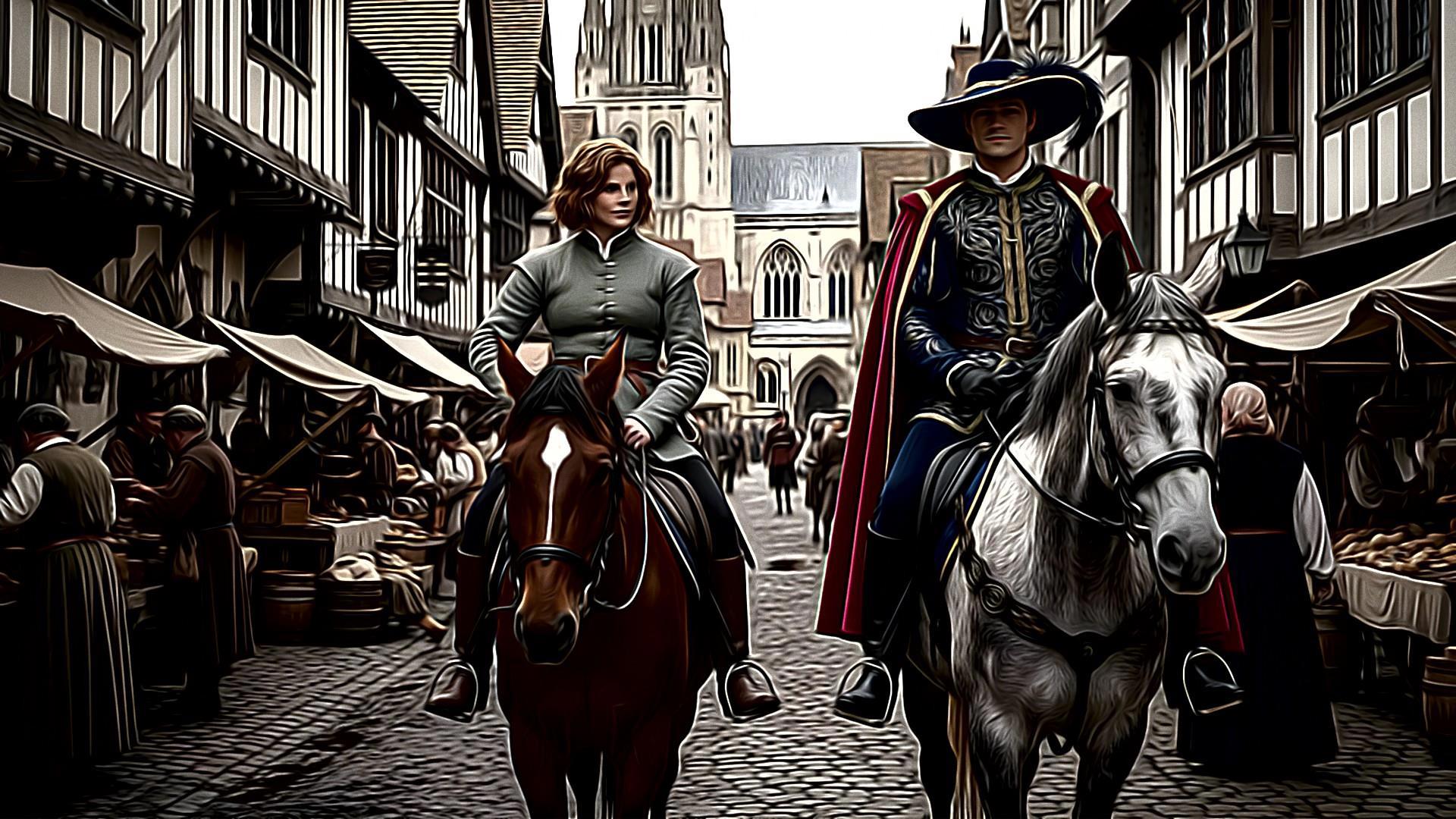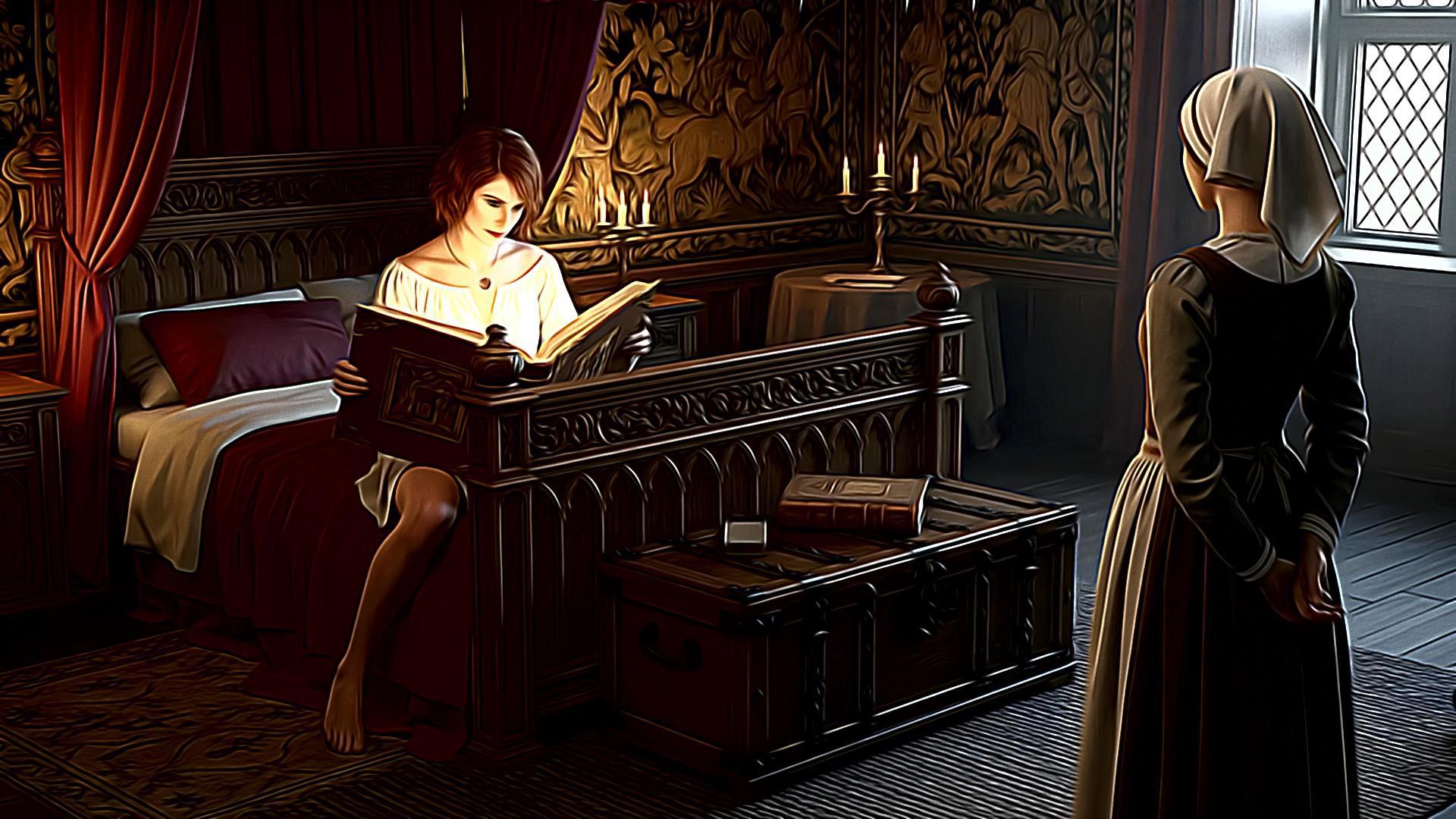 Оказалось - конечно же смерть. Королева устроила заговор, в котором Раньяну была уготована роль убийцы короля. Но всё пошло не так. Для всех. Раньян рубит людей королевы, а потом ещё кучу народу, пробиваясь через весь дворец к покоям Артиго. На заднем плане там король лежит, которого люди его жёнушки и замочили первым. Двуручников в этой драке не было, все противники Раньяна были вооружены мечами с корзинчатыми гардами. Генерить сцены с фехтованием вообще очень сложно, а если народу много - ещё сложнее. Потому, что имеем - то имеем.