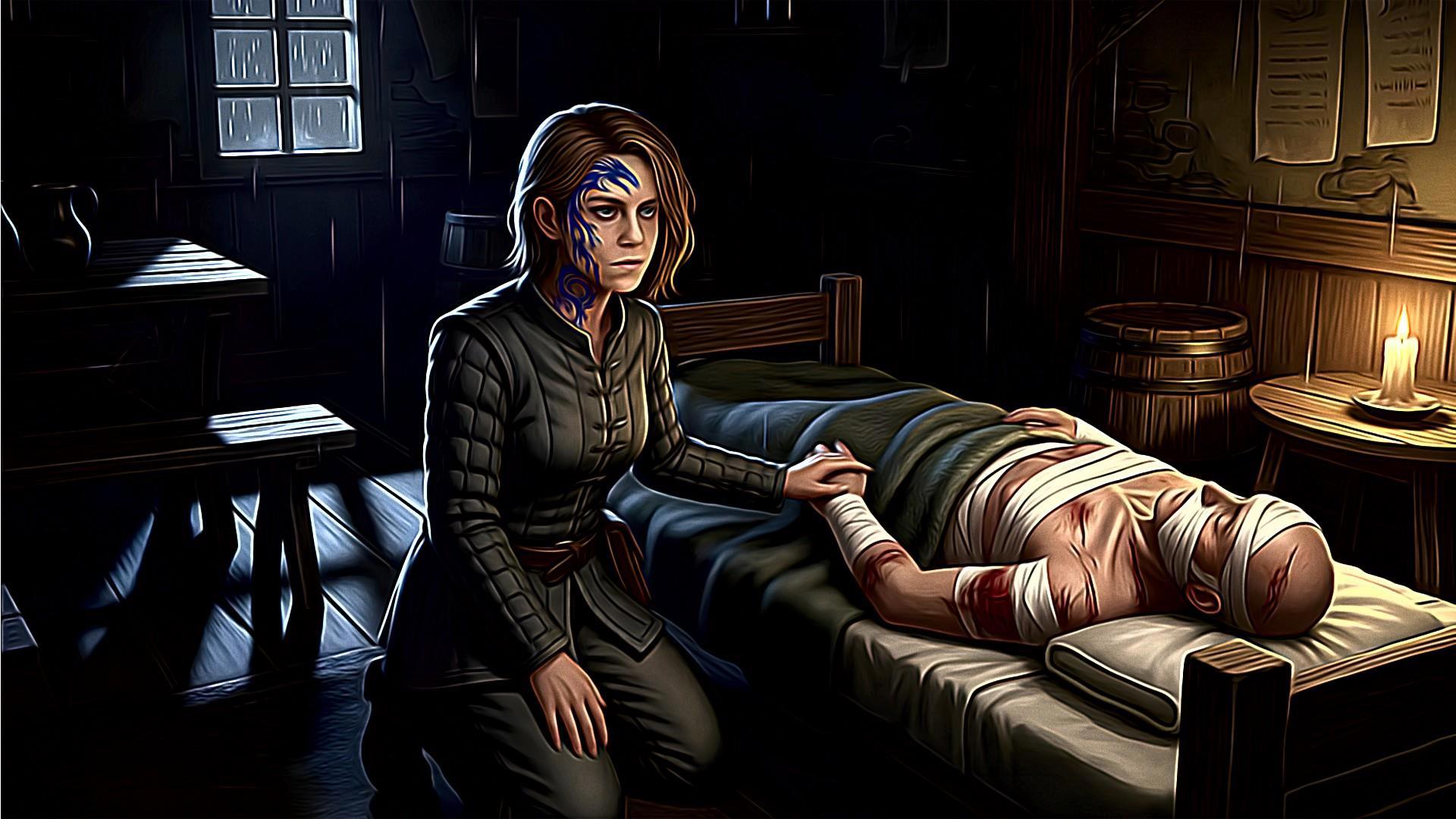 Божий суд Елене обошёлся дорого. Поскольку сам медик серьёзно ранен, его функции приходится исполнять Раньяну. Гамилла прибежала помогать (и вся "Маленькая смешная армия" с ней). Раньяну раны штопать доводилось, но вот особенности применения Леной спиритуса он не знал и применил его весьма радикально, т.е. прямо на рану вылил.