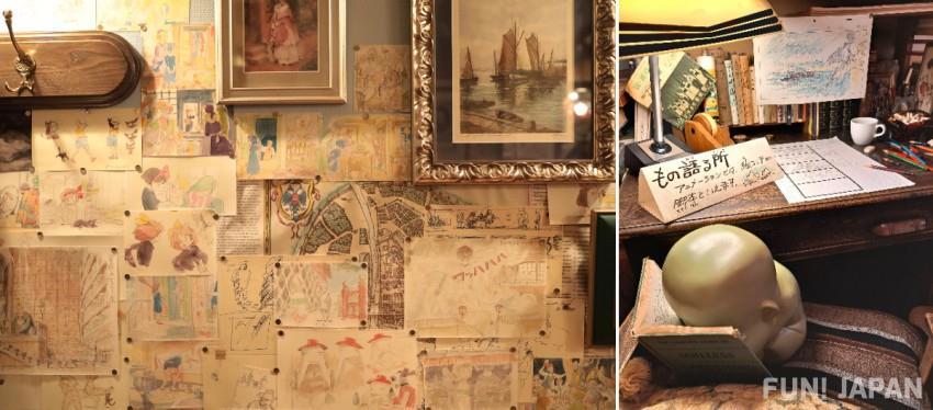 Честно, я бы зависала там днями и ночами. Большую часть экскурсии я провела именно там, разглядывая детальки, детали и деталища. Механизмы, игрушки, книги, черновики, записи - чего там только нет! И все в такой рабочей эстетике. Иногда там проходят мастерклассы - и можно посмотреть, как художник делает раскадровки или зарисовки.