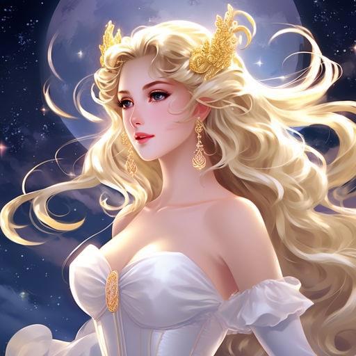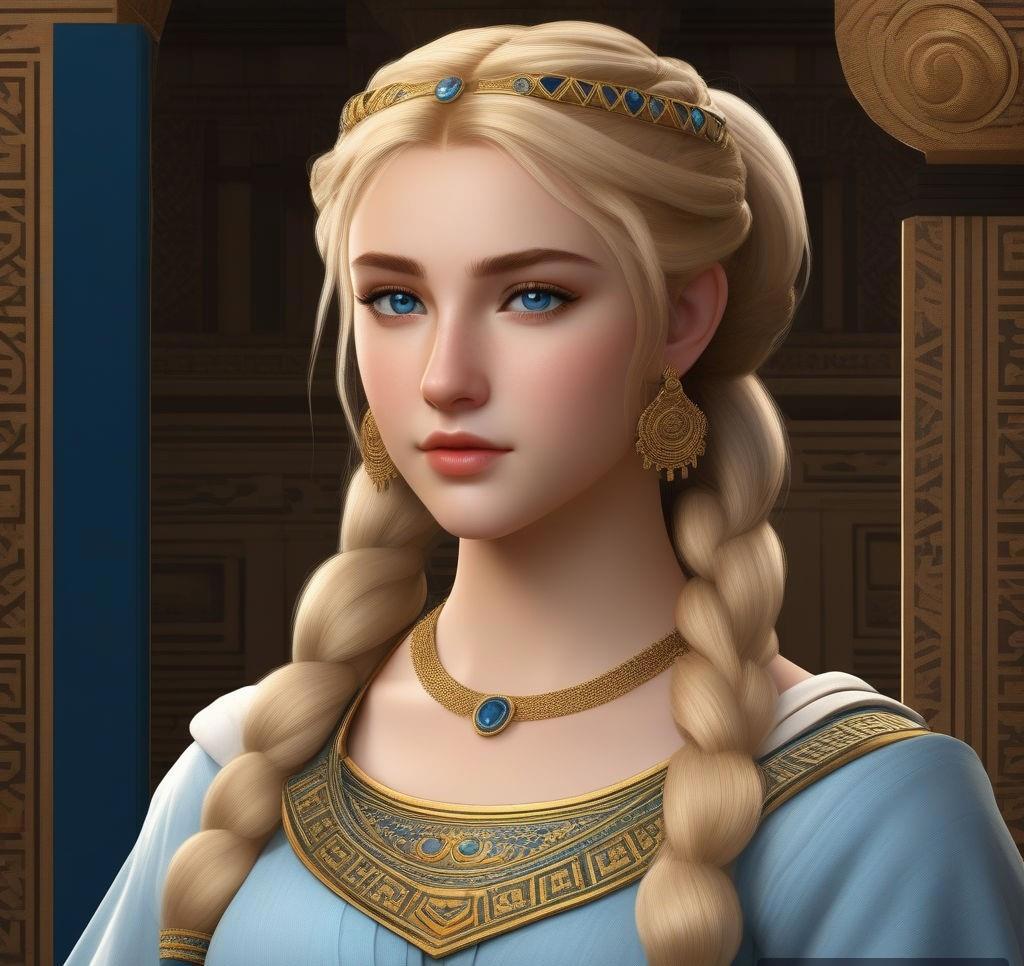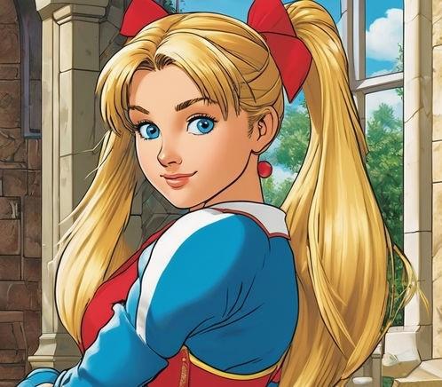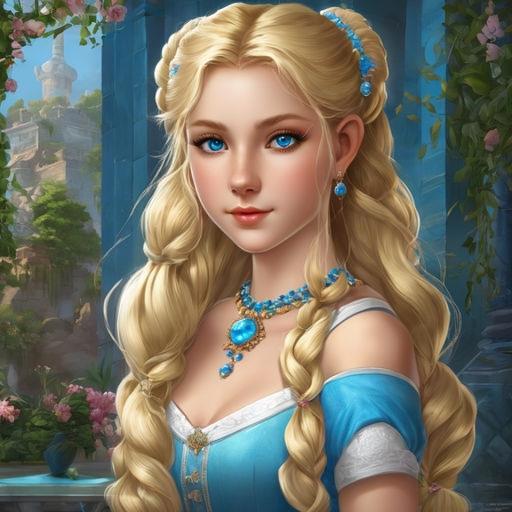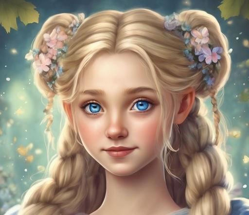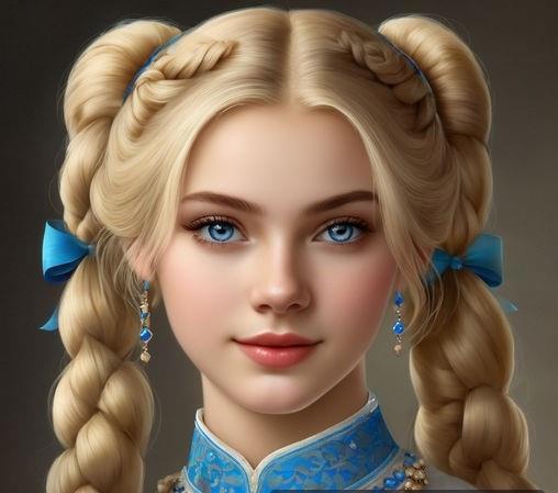 Шестнадцатилетняя девушка с голубыми глазами и длинными светлыми волосами, которые она носит в виде двух хвостиков по бокам с пучками наверху
