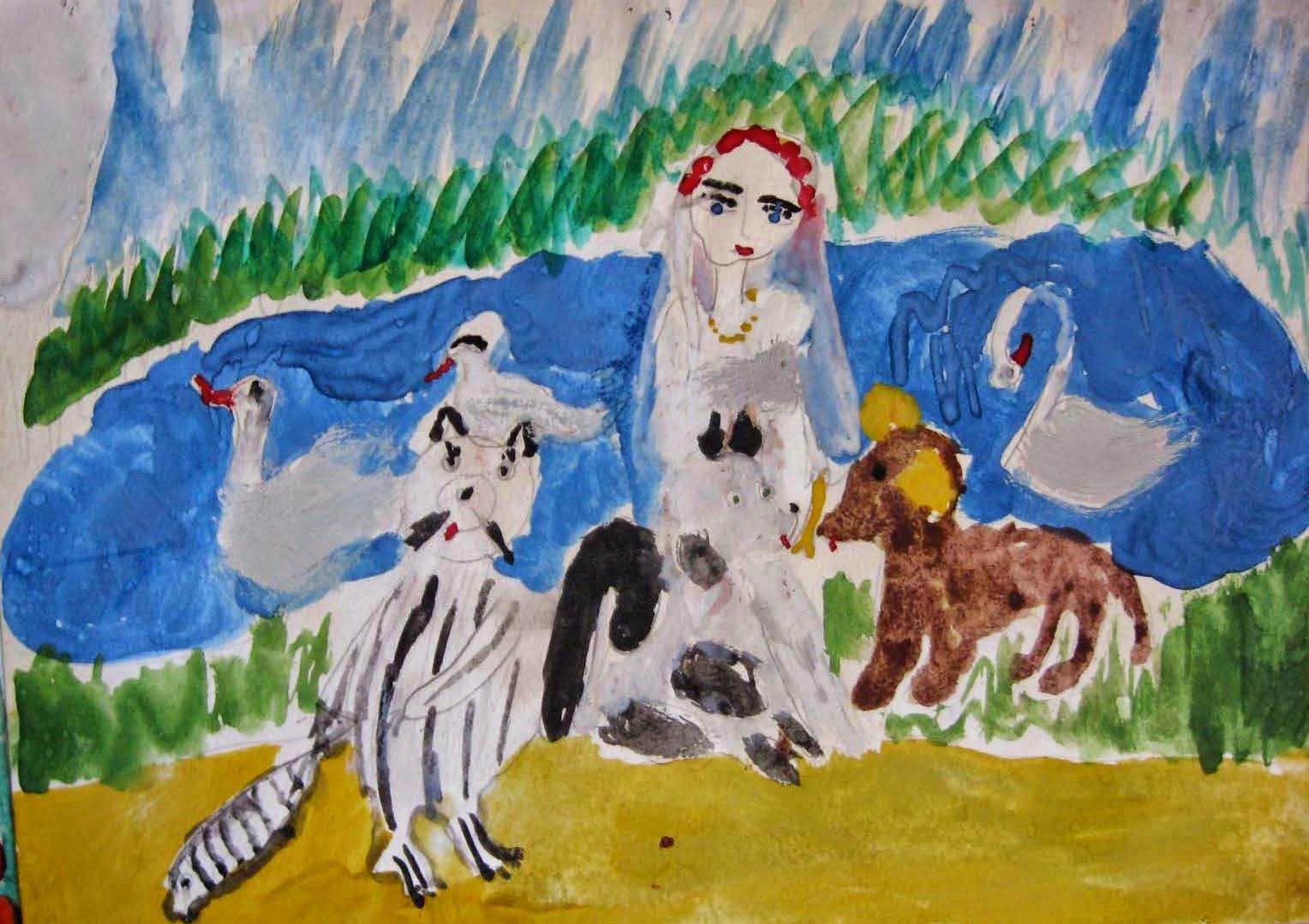 Автор: Kristina KamaevaПопалась мне моя картина "из раннего". Помню даже, как называлась! "Прощание невесты". Полоски у кота понравились :)