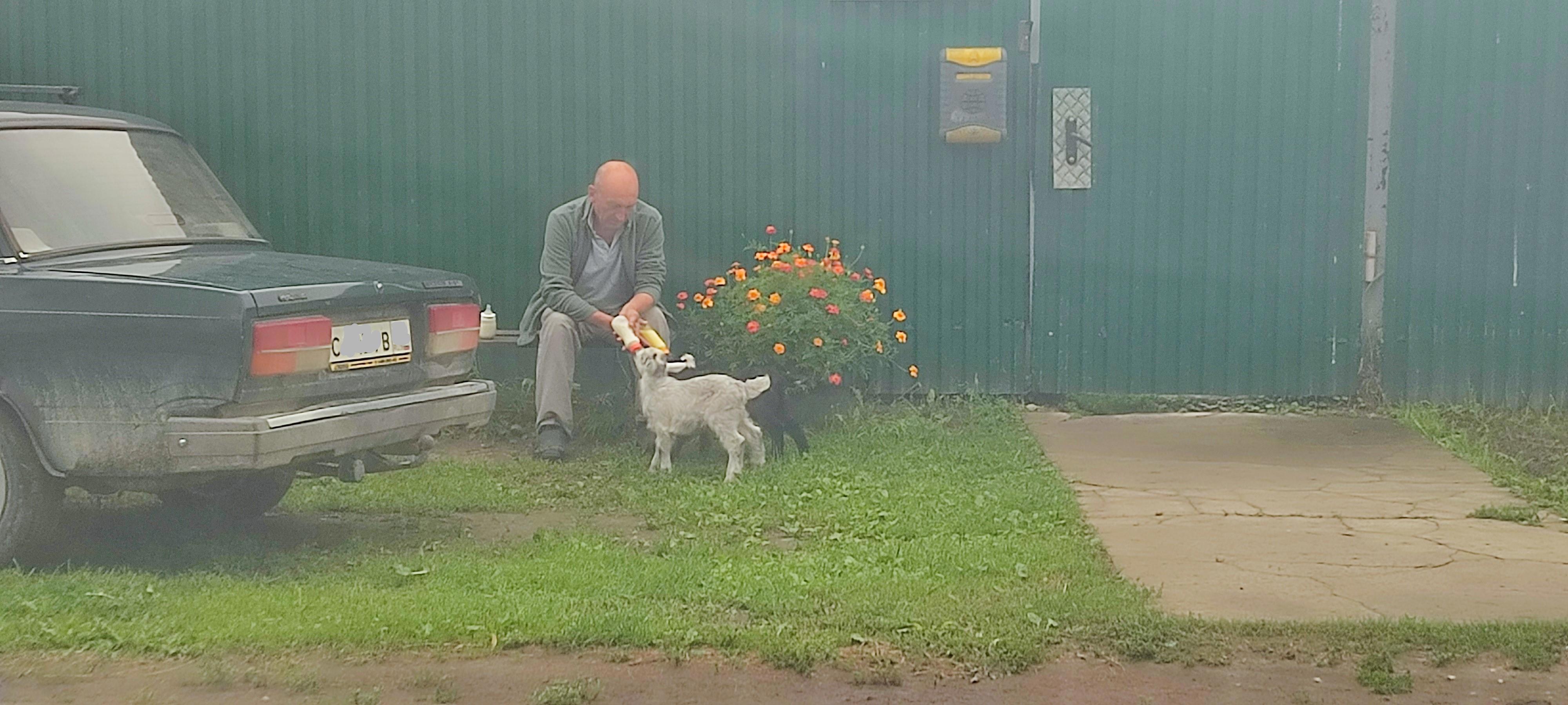 Козлят из бутылочек кормил. Один чёрный, другой белый - всё как в жизни...