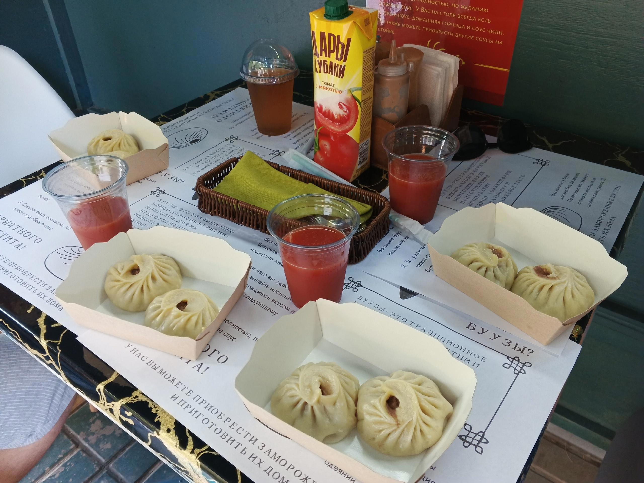 По вкусу буузы ничем не отличаются от мантов, хинкали или пельменей. Единственное отличие - отверстие наверху и готовятся на пару. Но вкусно, сытно. Каждый бууз на выходе весит 100 грамм. Так что, два бууза в порции более чем достаточно.