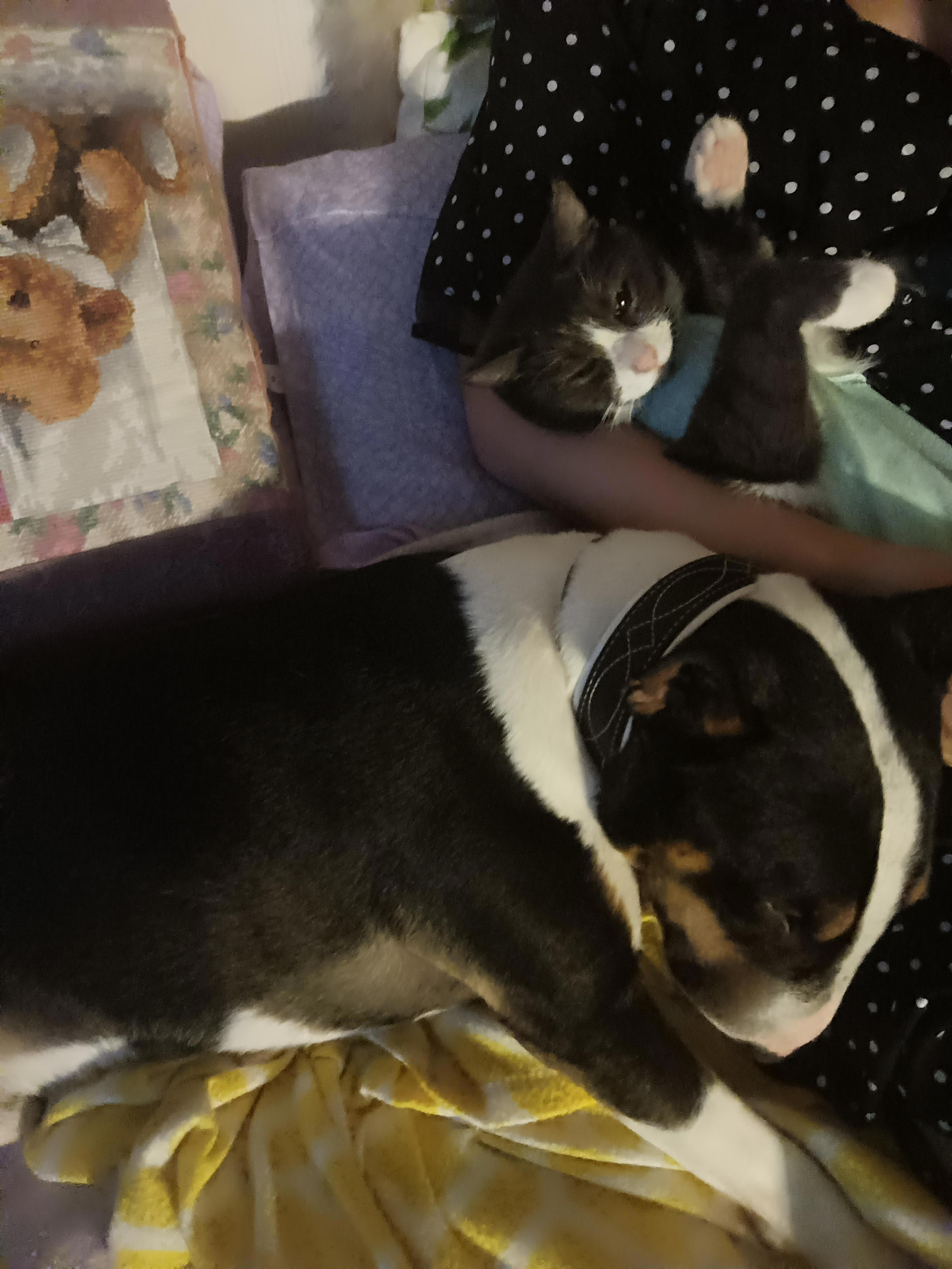 Да, Дама-дама всё ещё в попонке. Шов маленький, каждый день, как положено, обрабатывается. Гриша её охраняет.
