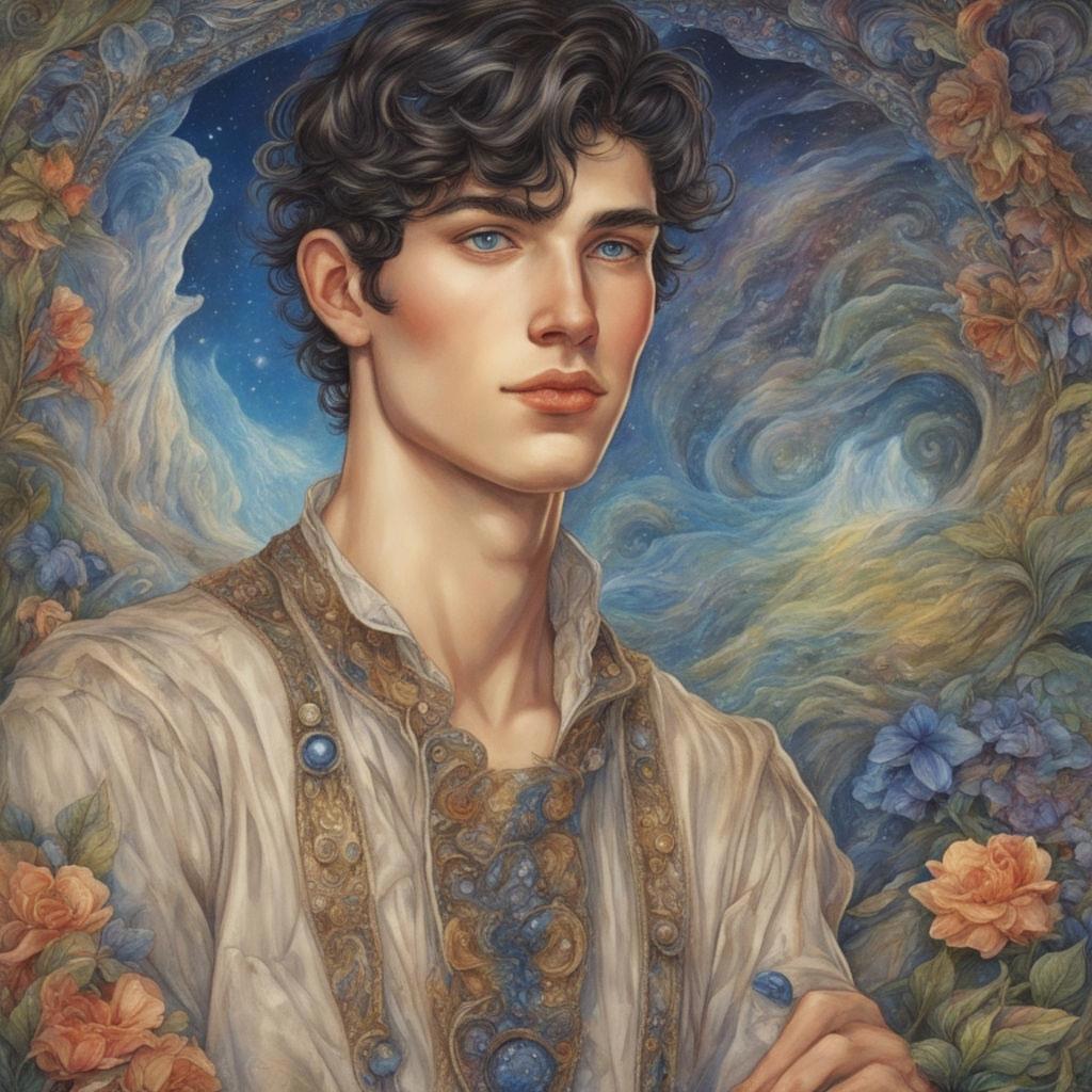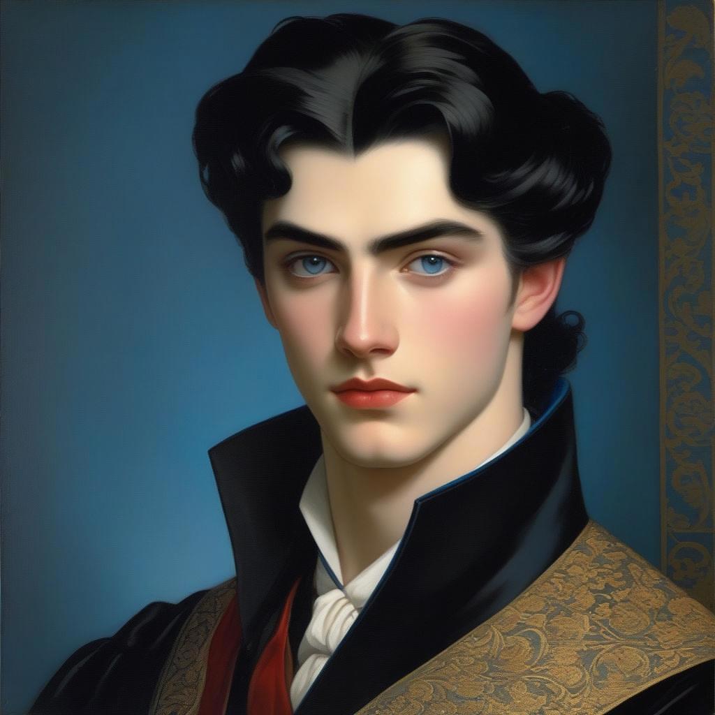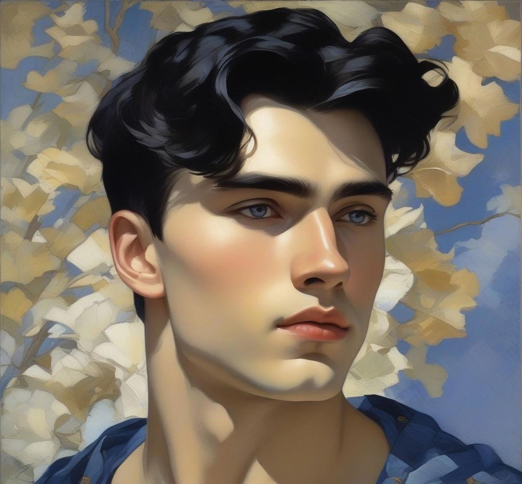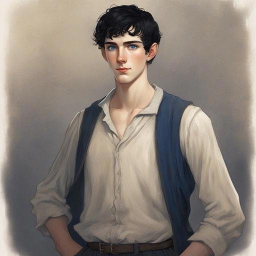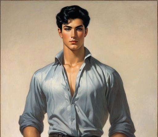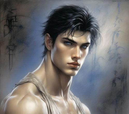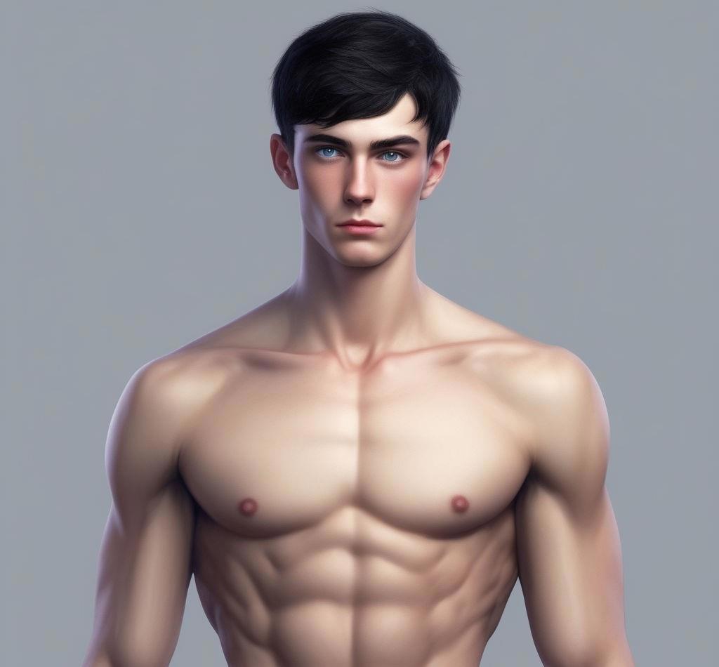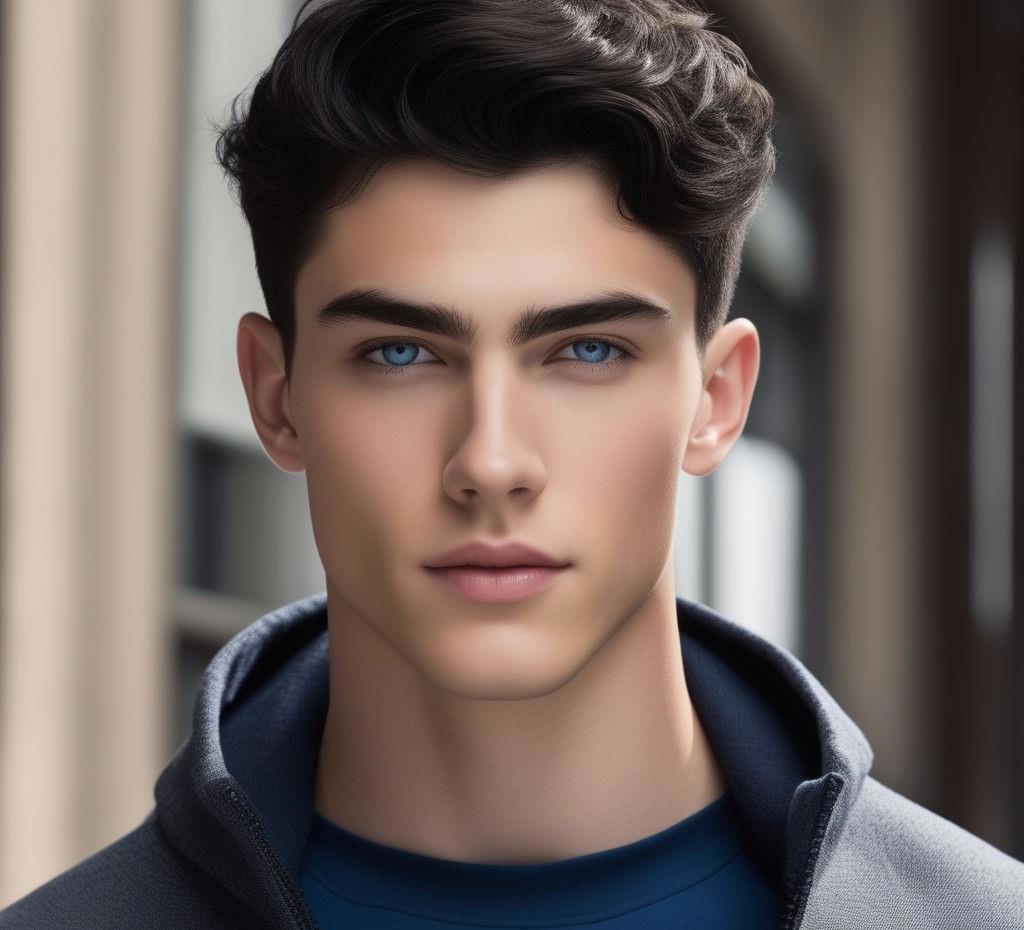 Двадцатилетний высокий широкоплечий молодой человек с короткими черными волосами с темно-синими глазами, в хорошей физической форме