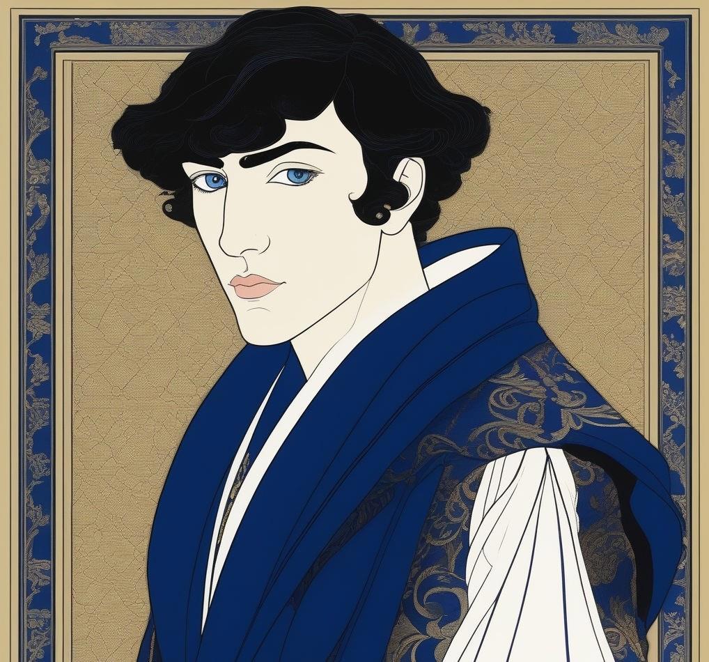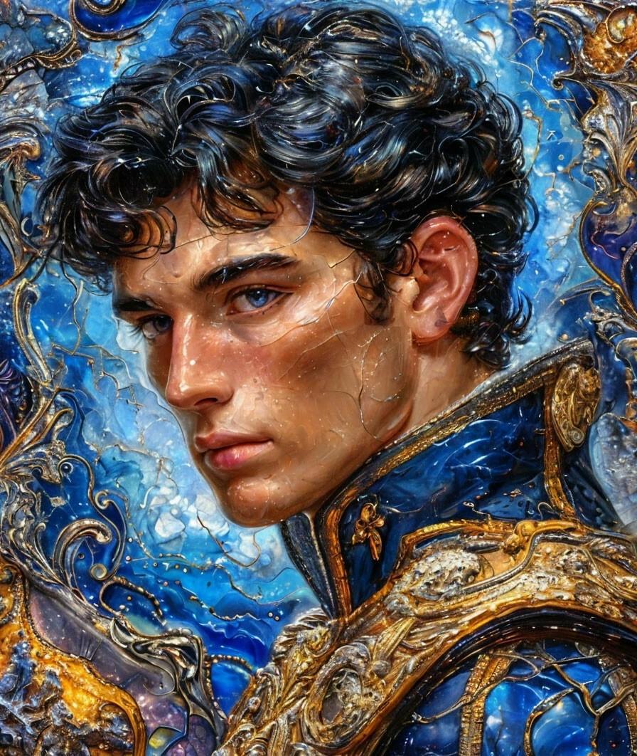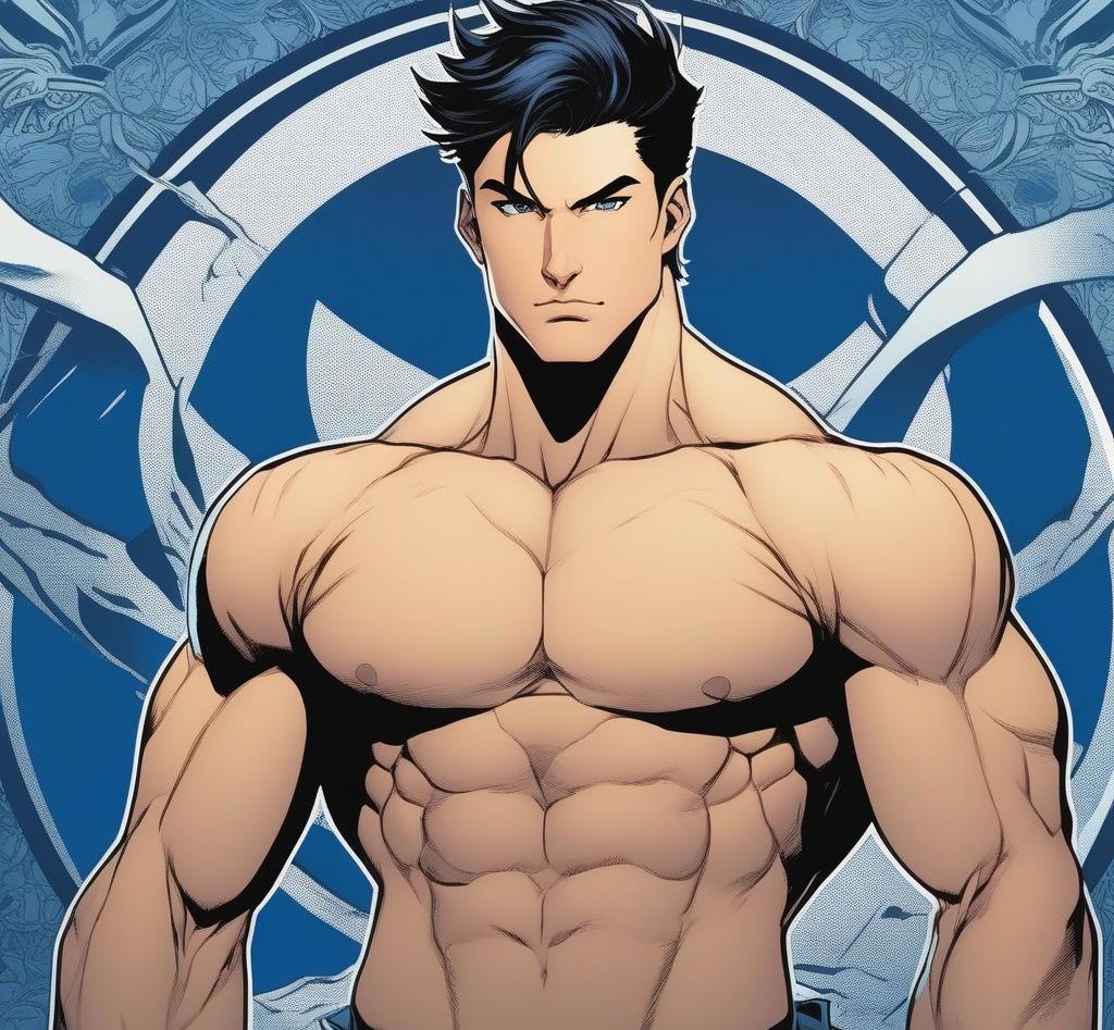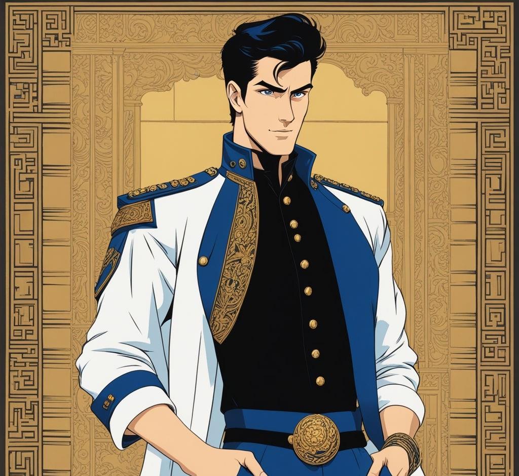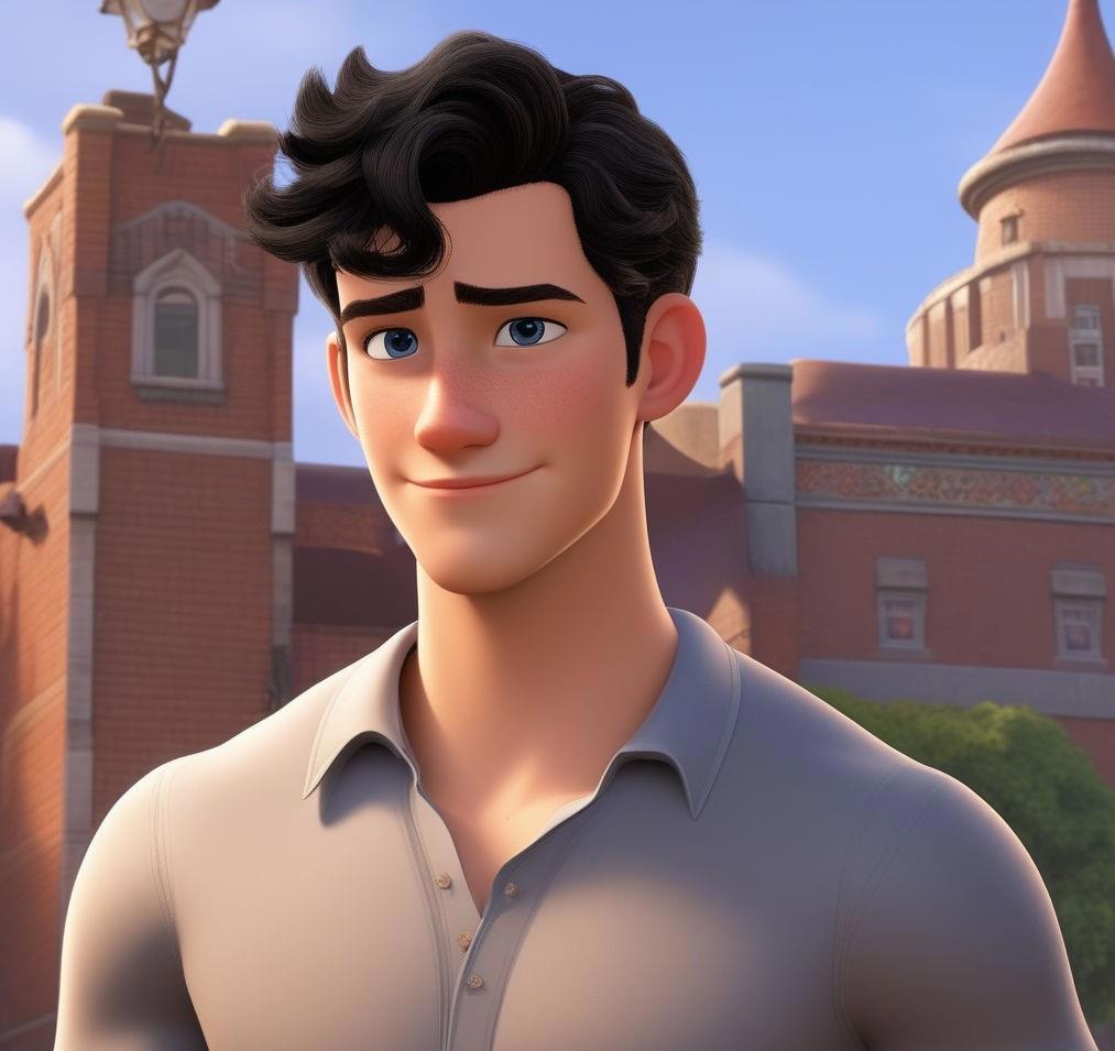 Двадцатилетний высокий широкоплечий молодой человек с короткими черными волосами с темно-синими глазами, в хорошей физической форме