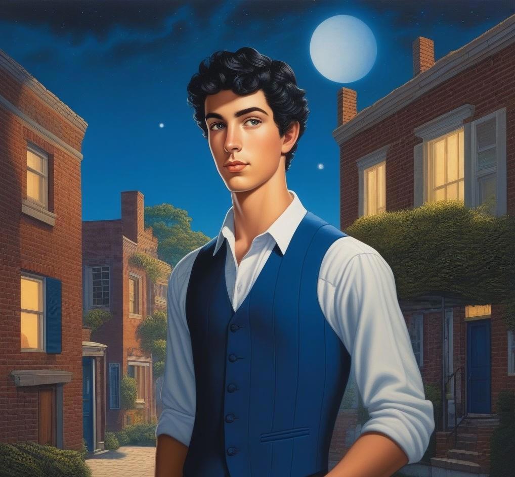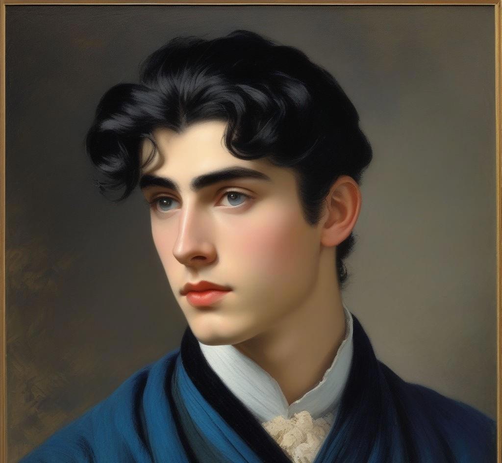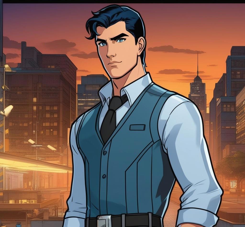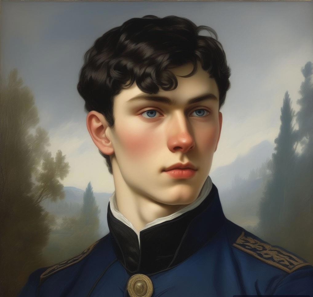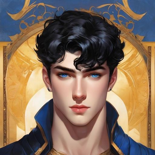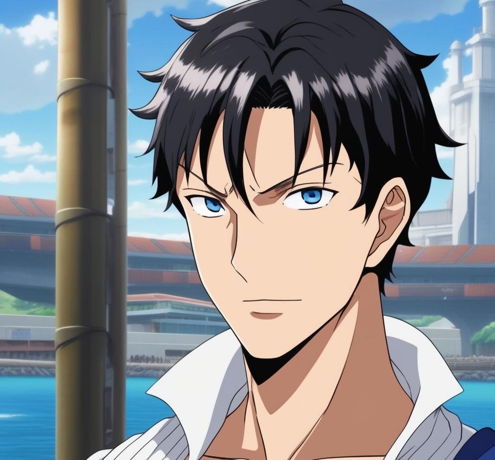 Двадцатилетний высокий широкоплечий молодой человек с короткими черными волосами с темно-синими глазами, в хорошей физической форме