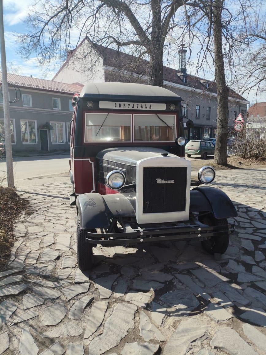 Данной модели автобуса не существовало. Это реплика ретро-автобуса, а точнее собирательный образ. Установлен как памятник в г. Сортавала.