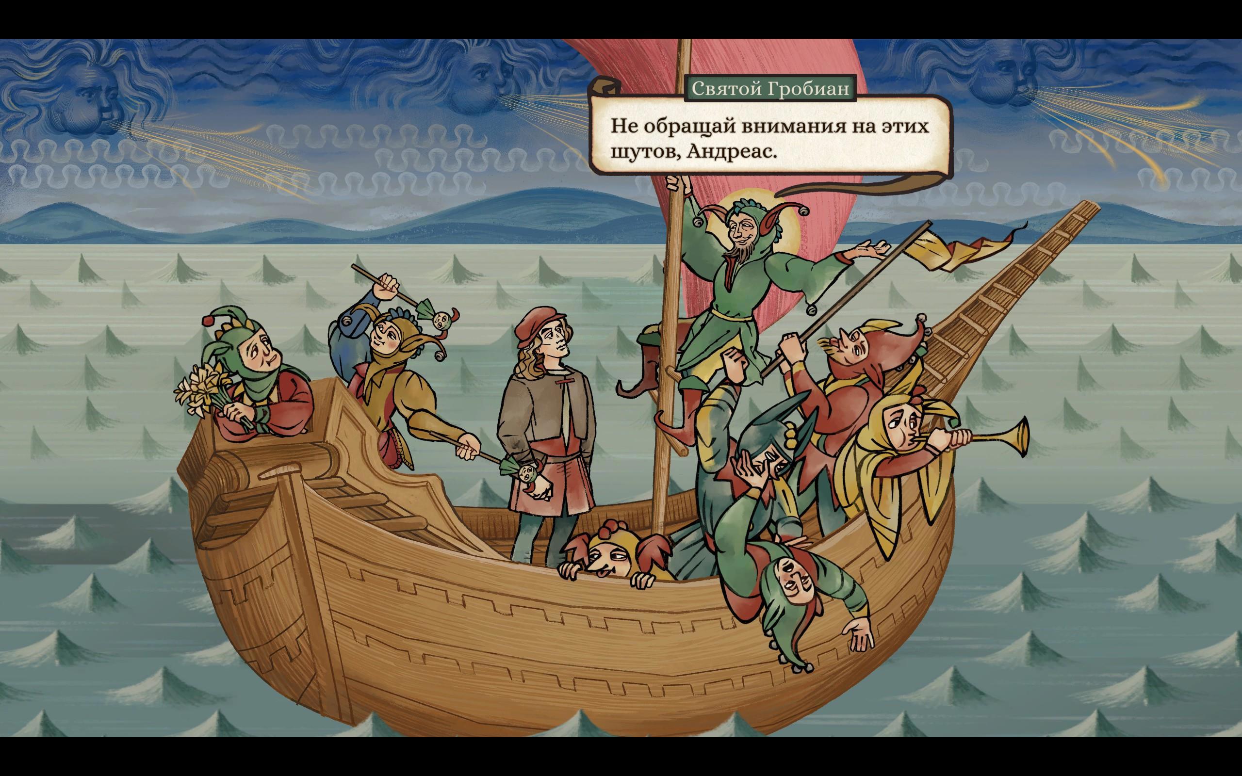 Что ж, конечно, в истории есть фановые элементы. Прежде всего, не обошлось без доли абсурдистики, столь присущей страдающему Средневековью. Ротораздирающего «лежала вся маршрутка» тут, к великому счастью, нет. Зато игра изобилует элегантной иронией и действительно такими «стилевыми» шуточками и каламбурами. Ну, например:
