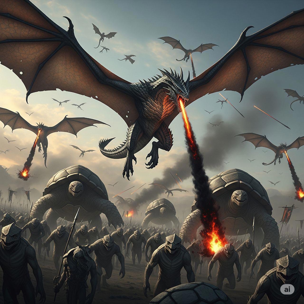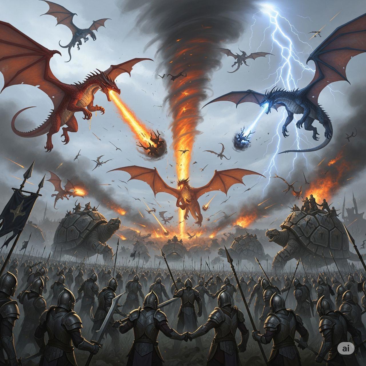 Первые защитники были смяты и на помощь прилетели драконы, но и они проигрывали.
