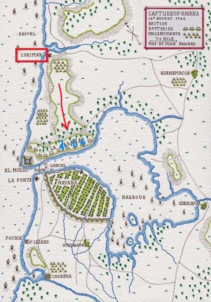 Идея была такой. Пять сотен англичан высаживаются на берег, прорываются к цепи и взрывают её. Благо пушки форта были направлены только в сторону моря. В тылу испанцы могли встретить противника только мушкетным огнём. Либо переправить из города пушки на высоты Ла Кабана. Вот тогда к цепи не прорвёшься.