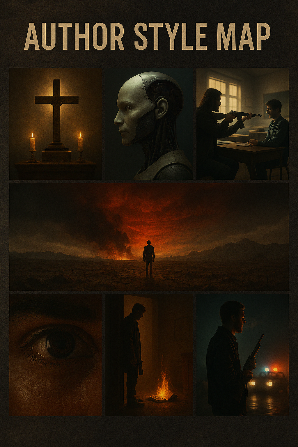 Автор: Евгений ШпунтКицер, на работе было скучно. Прогнал все свои короткие рассказики через chatGPT (классные разборы делает, кстати). В конце ИИ спросил, не изволю ли я, чтобы он создал что-то вроде авторского профиля (основные темы, moodboard, даже ассоциации). Я изволил. Короче, вот что получилось, даже с картинкой. И ЧСХ, в принципе все верно.